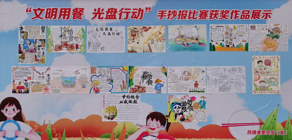 米粒虽小,尤见礼义廉耻;节约事微,可助兴国安邦。为深入贯彻习近平总书记关于制止餐饮浪费行为的重要指示精神,抓好反食品浪费法的宣传贯彻,推动广大学生养成爱粮节粮的行为习惯,10月18—19日,由学生处主办、院膳食委员会承办的“文明用餐 光盘行动”手抄报比赛顺利落下帷幕。