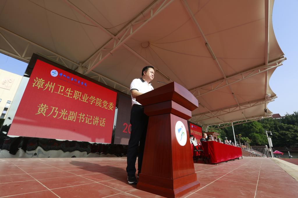 武警漳州支队副支队长陶建荣在讲话中强调,军训是贯彻深化国防动员的重要举措,是同学们踏入大学重要的一课,是崭新的开始,也是一段具有非常意义的宝贵经历,将成为你们人生中一段美好而难忘的回忆。他希望同学们发扬“掉皮掉肉不掉队,流血流汗不流泪”的精神,敢于吃苦,迎难而上,以饱满的热情和昂扬的斗志投入训练,在军训中感悟和秉承校训,做到“厚德、励志、笃学、尚能”,在实现中华民族伟大复兴的中国梦的实践中谱写精彩的青春华章。