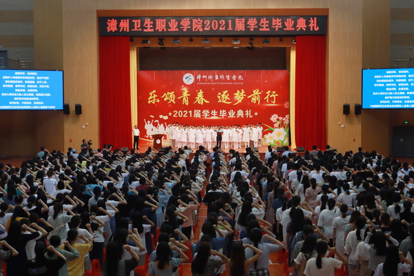 正当举国欢庆中国共产党百年华诞之际,我们迎来了2021届学生毕业季。6月30日上午,漳州卫生职业学院2021届学生毕业典礼在新落成的体育艺术中心隆重举行,学院党委书记林忠、院长沈国星、纪委书记宋志海、副院长沈小美、副院长陈义三,援鄂优秀校友代表市中医院吴丽榕校友、市人民医院洪桂兰校友,以及学院各处室(系部)领导,教师代表、辅导员代表、宿管阿姨代表和2021届全体毕业生参加,典礼由党委副书记黄乃光主持。