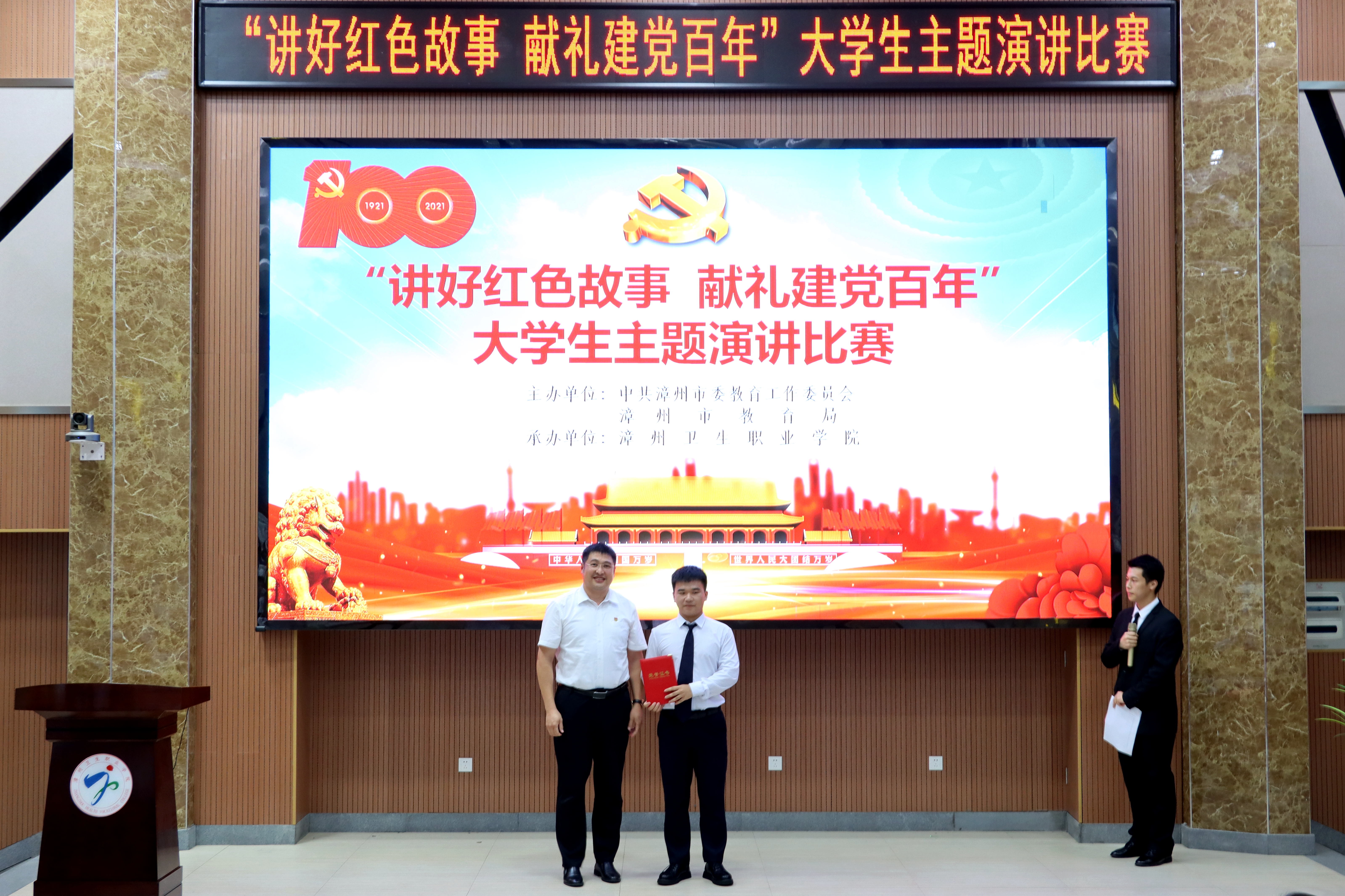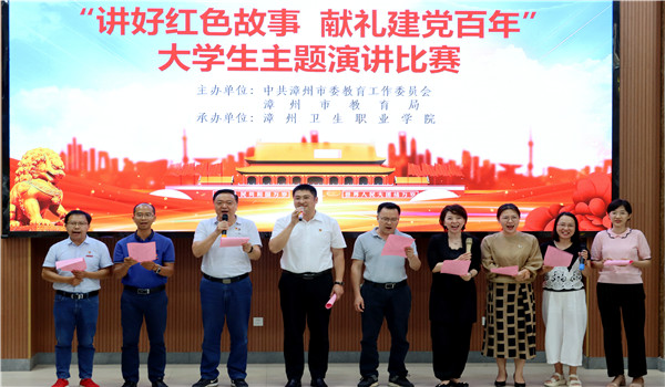 百年征程波澜壮阔,百年初心历久弥坚。为庆祝中国共产党建党一百周年,讴歌中国共产党伟大奋斗历程,继承和发扬党的光荣传统,引导广大青年大学生厚植爱党爱国情怀,5月26日下午,由中共漳州市委教育工作委员会、漳州市教育局主办的市属高校“讲好红色故事 献礼建党百年”大学生主题演讲比赛决赛在我院学术报告厅隆重举办,漳州市委教育工委副书记、市教育局副局长洪维椿,漳州卫生职业学院党委副书记黄乃光,漳州市教育局思政科科长黄勇长,漳州卫生职业学院党委委员、党委工作部部长方鑫出席活动,闽南师范大学、漳州电视台等专业老师担任比赛评委。比赛过程中,参加活动的领导和评委老师集体诵读方志敏《可爱的中国》。