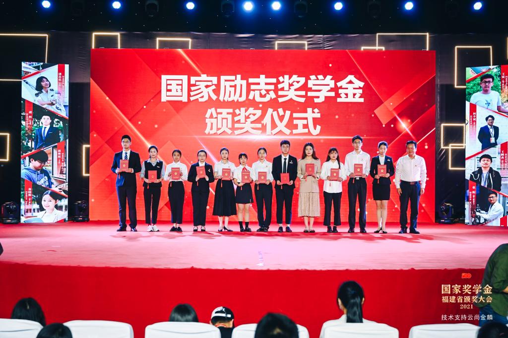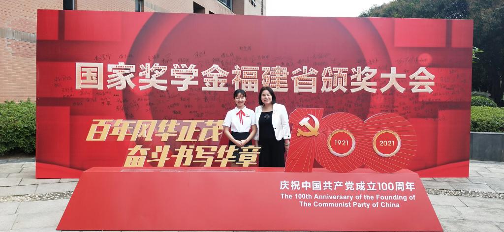 4月27日,2021年国家奖学金福建省颁奖大会在福建师范大学旗山校区举办。我院医学技术系医疗设备应用技术专业学生吴梅拾,作为全省4名高职院校国家励志奖学金获奖学生代表之一,参加现场表彰并接受福建省人力资源和社会保障厅副厅长洪长春颁奖。这是我院首次有学生代表参加此项大会。
