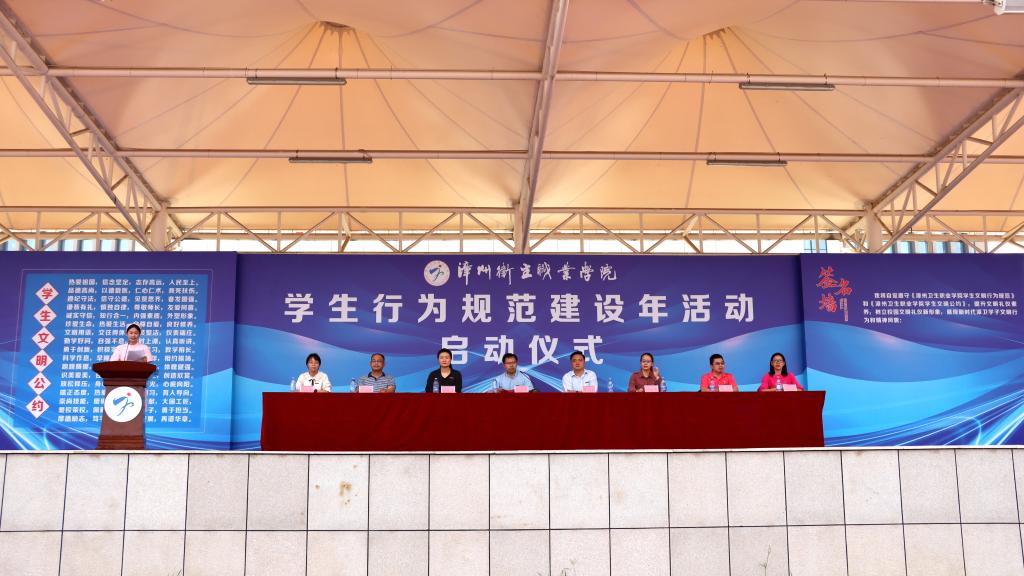 院团委学生副书记带领同学集体诵读《漳州卫生职业学院学生文明公约》,现场气势磅礴、回响不绝,用铿锵有力的声音传达漳卫学子立德修身的信心和决心,让文明公约“声”入人心。