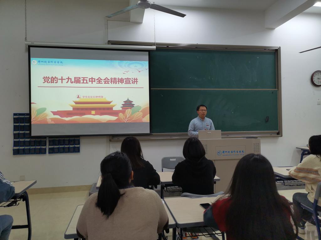 钟处长首先介绍了党的十九届五中全会的历史背景和重大意义,阐明党的十九届五中全会的精髓要义在于三个“新”,就是新发展阶段、新发展理念、新发展格局,三个“新”深刻回答了我国进入什么样的发展阶段、实现什么样的发展、如何实现发展的重大命题。同时,他介绍了党的十八大以来,习近平总书记多次到高校考察并与师生座谈,还多次给青年学生、大学毕业生、志愿者回信,对广大青年学子提出了殷切的期望,从“扣好人生第一粒扣子”到“青年强则国家强”,习近平总书记一次次对广大青年学子进行鼓励、鞭策和激励。