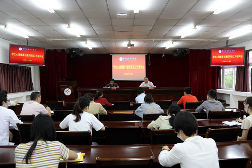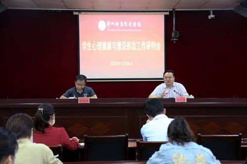 5月28日下午,学院在明诚楼五楼演播厅召开2020年第一次学生心理健康与意识形态工作研判例会,党委副书记黄乃光出席会议并讲话,学生处、团委,各系党总支书记(副书记)、学工办主任、团总支书记、辅导员(班主任)共50余人参加会议。