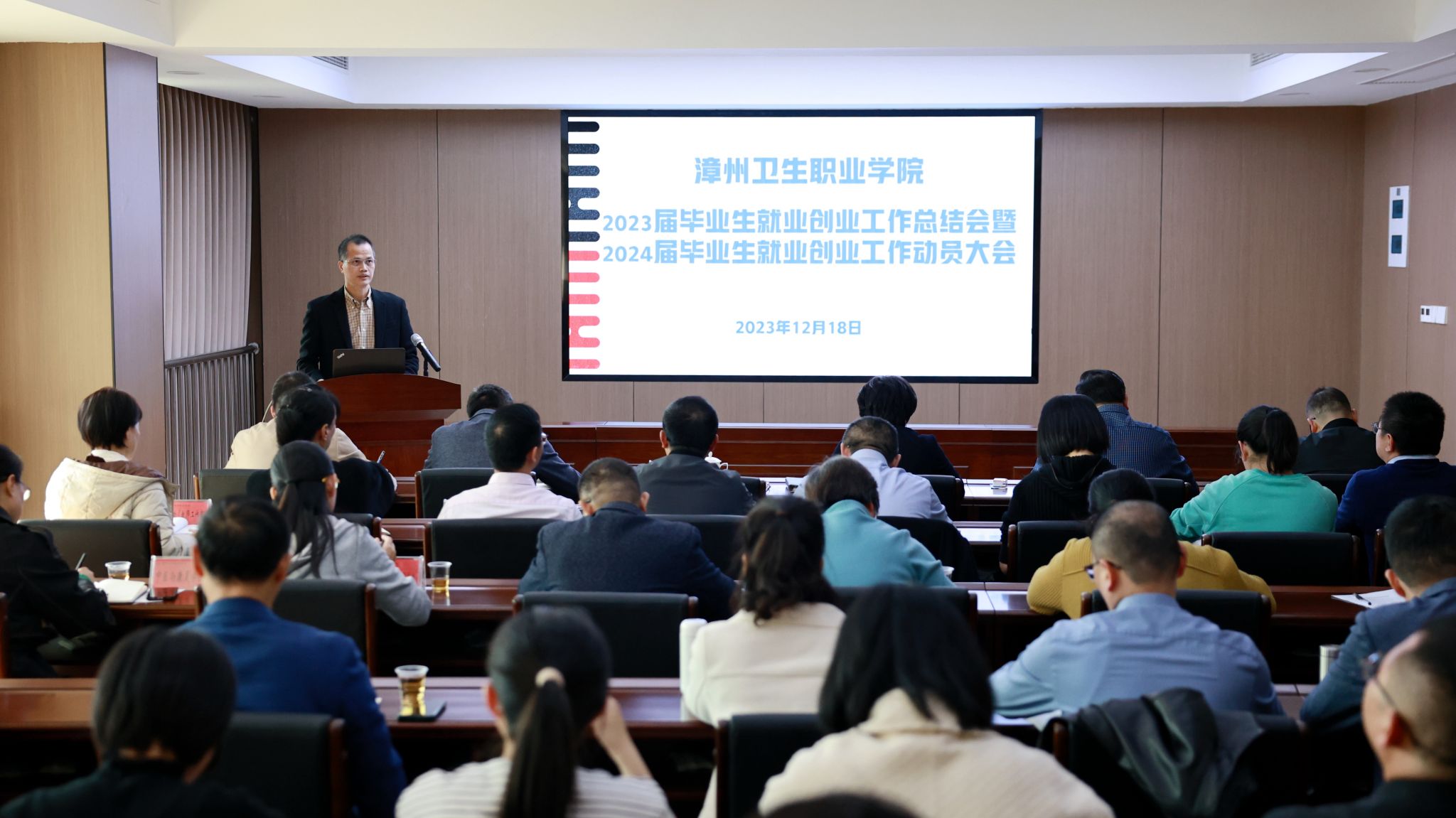 12月18日下午,我校在行政楼第三会议室召开2023届毕业生就业创业工作总结会暨2024届毕业生就业创业工作动员大会,全体校领导、相关职能部门、二级学院党政负责人、学工办主任、毕业班辅导员及班主任参会,党委副书记黄乃光主持会议。