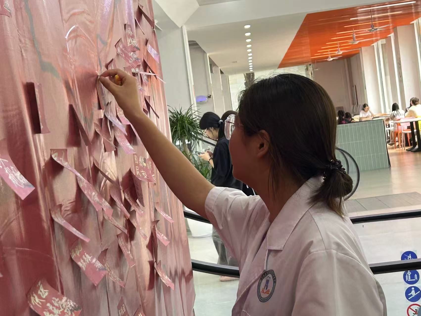 9月27日,为庆祝祖国繁荣昌盛,表达对祖国的深厚情感,我校膳食委员会在学校思源食堂一楼大厅举办“我对祖国有话说”的祝福活动。此次活动旨在通过简单而温馨的方式,让全校师生共同参与,用文字传递对祖国的热爱与祝福。