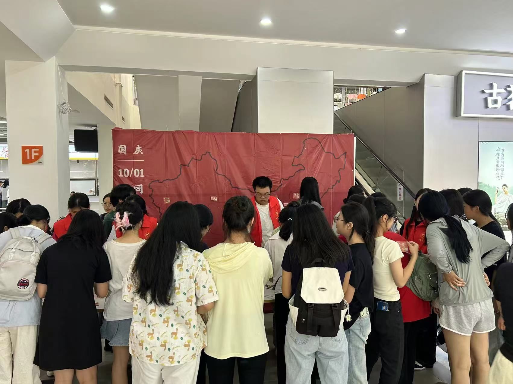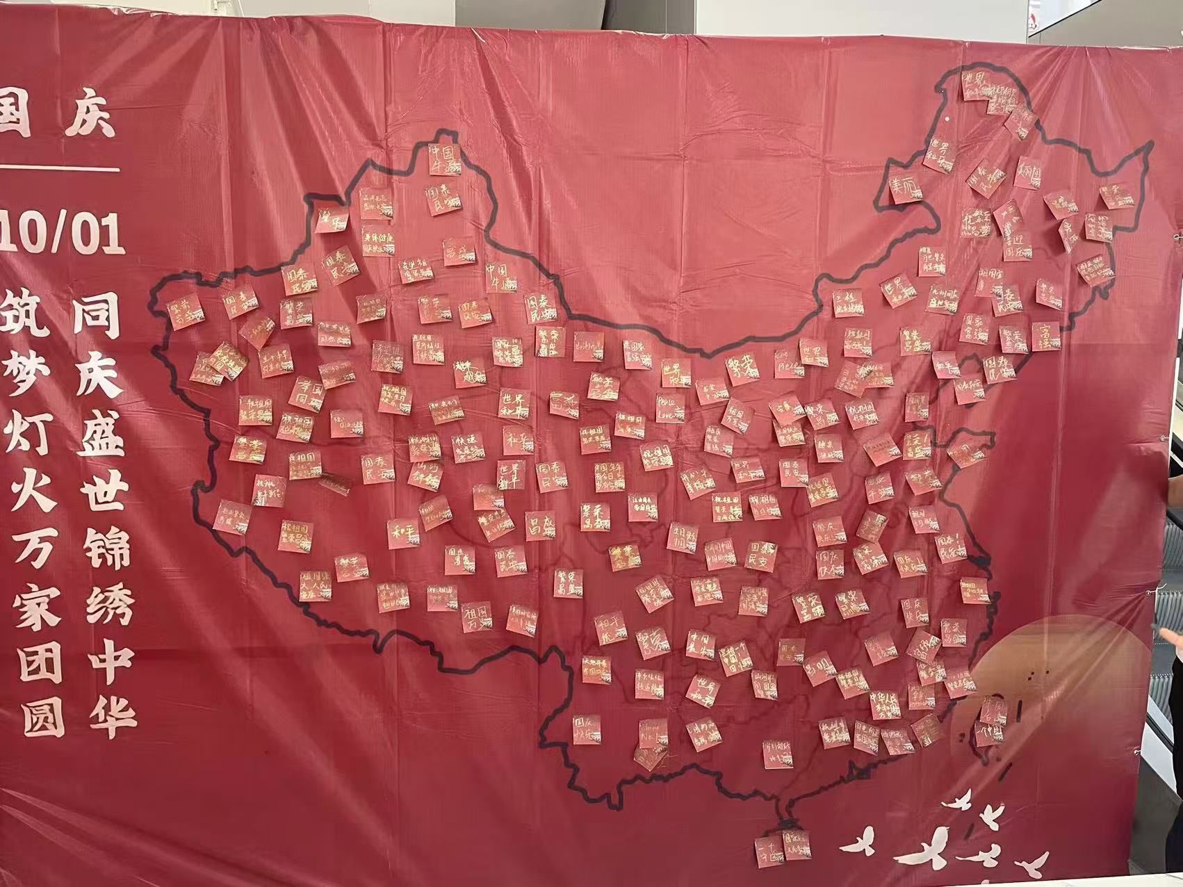 活动开始后,师生们纷纷拿起笔,在便利贴上写下自己对祖国的祝福和心声。有的同学写道:“祖国母亲,您辛苦了!感谢您为我们创造了如此美好的生活环境。”有的则表达了对未来的期许:“愿祖国越来越强大,人民生活越来越幸福!”还有的老师则用诗意的语言赞美祖国:“江山如画,盛世中华,愿祖国永远繁荣昌盛!”而在地图的边缘,也被同学们贴上了“一个中国!”的字样。活动现场气氛热烈,每一片祝福便利贴都承载着师生们对祖国的深情厚意。