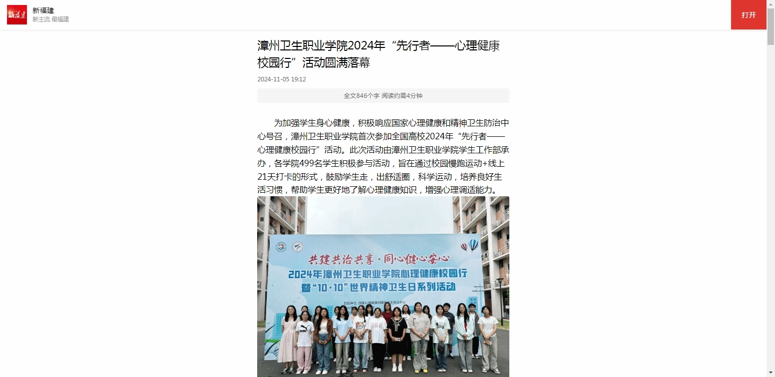 新福建:漳州卫生职业学院2024年“先行者——心理健康校园行”活动圆满落幕
