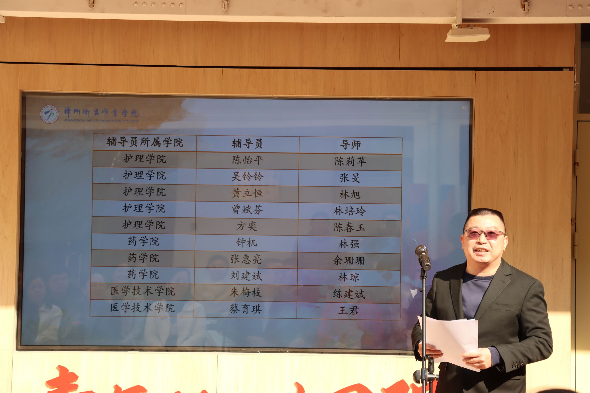 12月19日上午,我校在学生素质发展中心一楼举行2023、2024年新入职辅导员“师徒结对”仪式。活动由学生工作部部长主持,各二级学院党总支(副)书记、学工办主任、辅导员参加活动,学校党委副书记黄乃光出席活动并讲话。