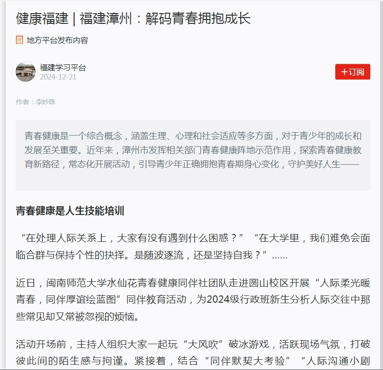 -健康福建 | 福建漳州:解码青春拥抱成长