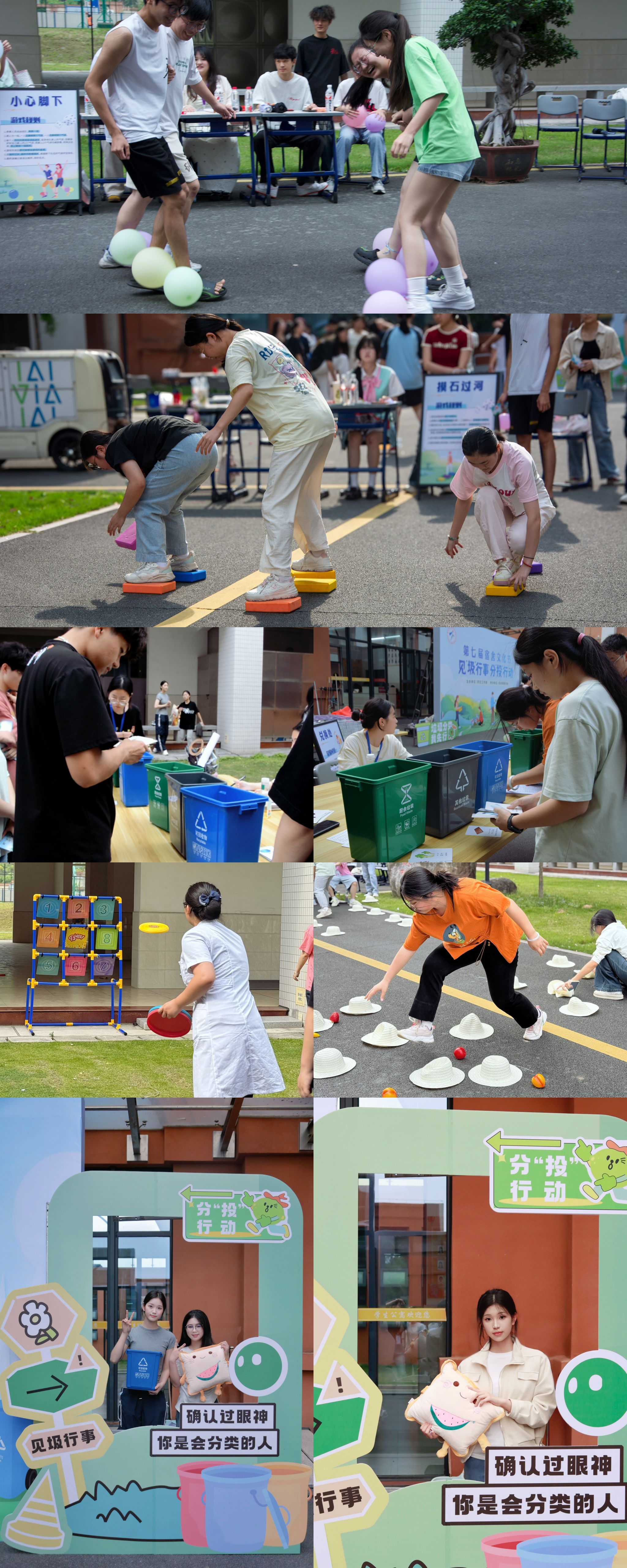 活动在青春洋溢的开场表演中拉开帷幕。活动现场设置了“垃圾分类闯关营”主题游园区,垃圾分类知识竞赛、环保连连看、环保飞盘九宫格等五类创意游戏环环相扣。活动同步推出“宿舍环保积分榜”激励机制,学生通过参与游戏、践行日常环保行为积累积分,进行积分兑换。