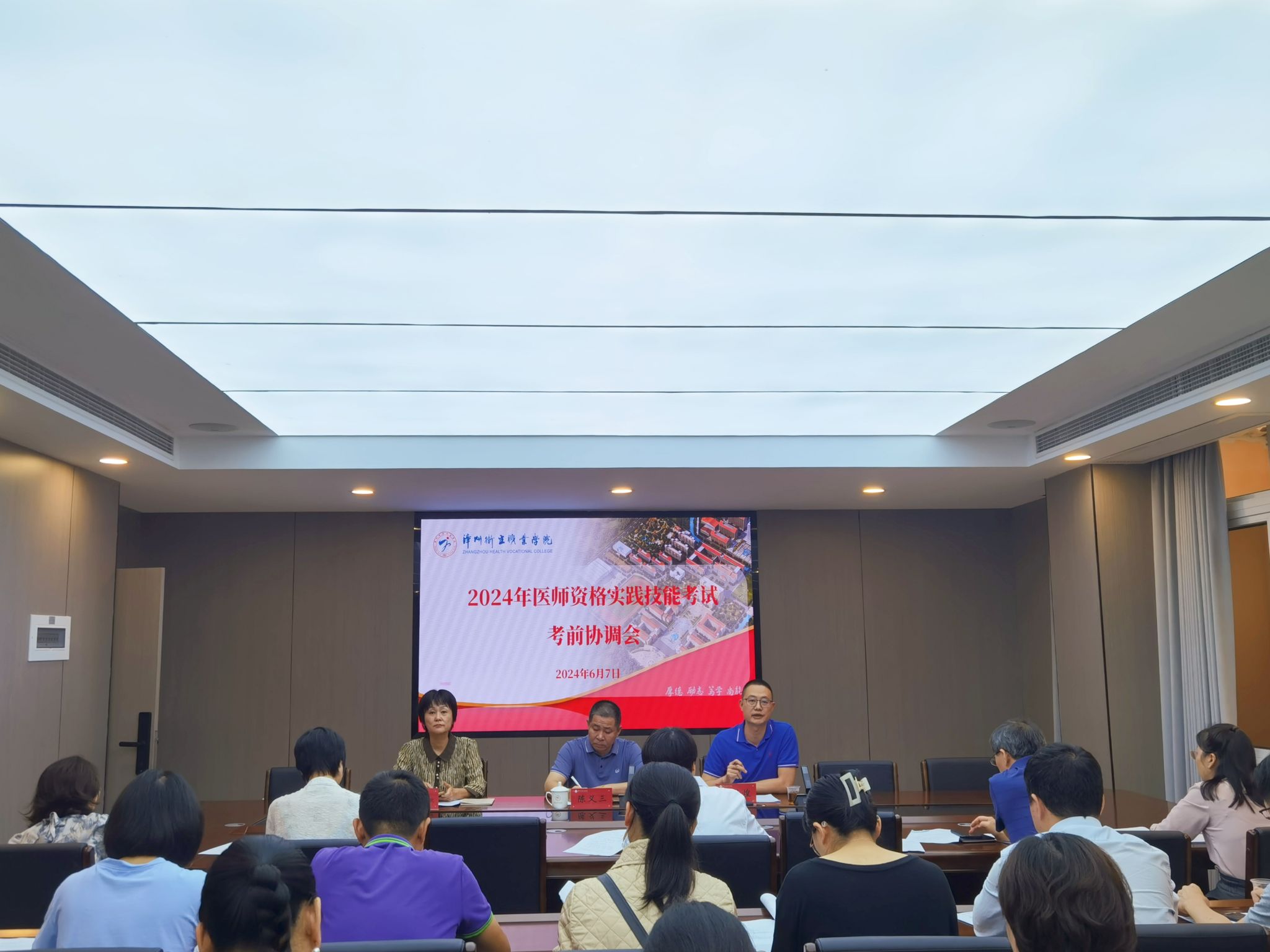 为高质量完成2024年医师资格实践技能考试,切实维护医师资格考试的良好秩序,学校于6月7日下午在行政楼第二会议室召开考前协调会。副校长陈义三、漳州市卫生健康人才服务中心余荣煌主任出席会议。