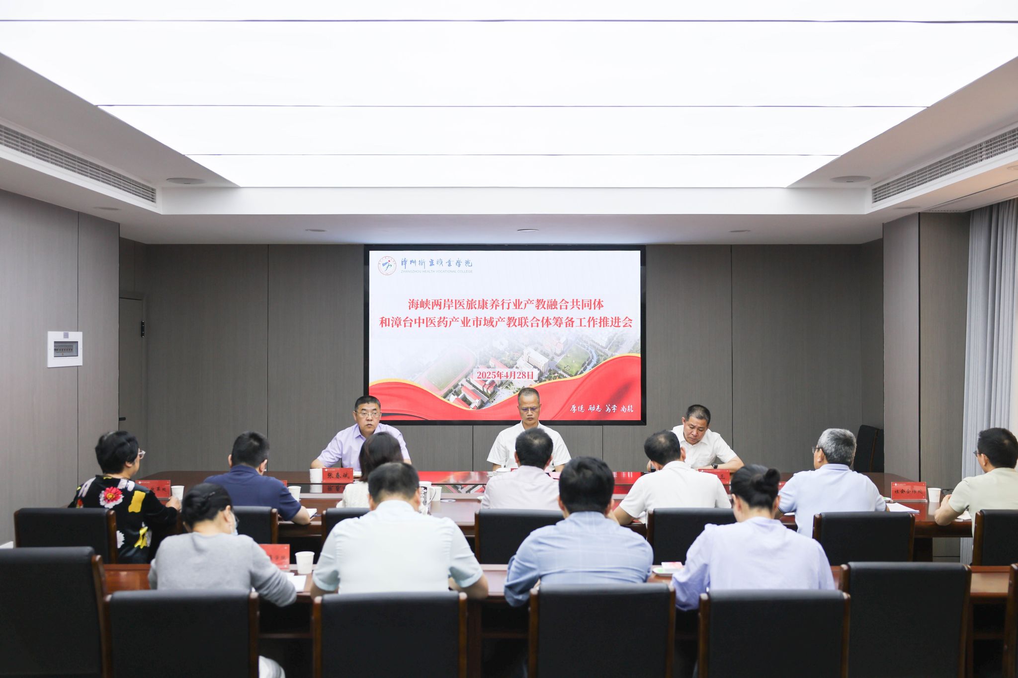 4月28日,我校召开海峡两岸医旅康养行业产教融合共同体和漳台中医药产业市域产教联合体筹备工作推进会。校长何坚,副校长陈义三、张春斌出席会议。