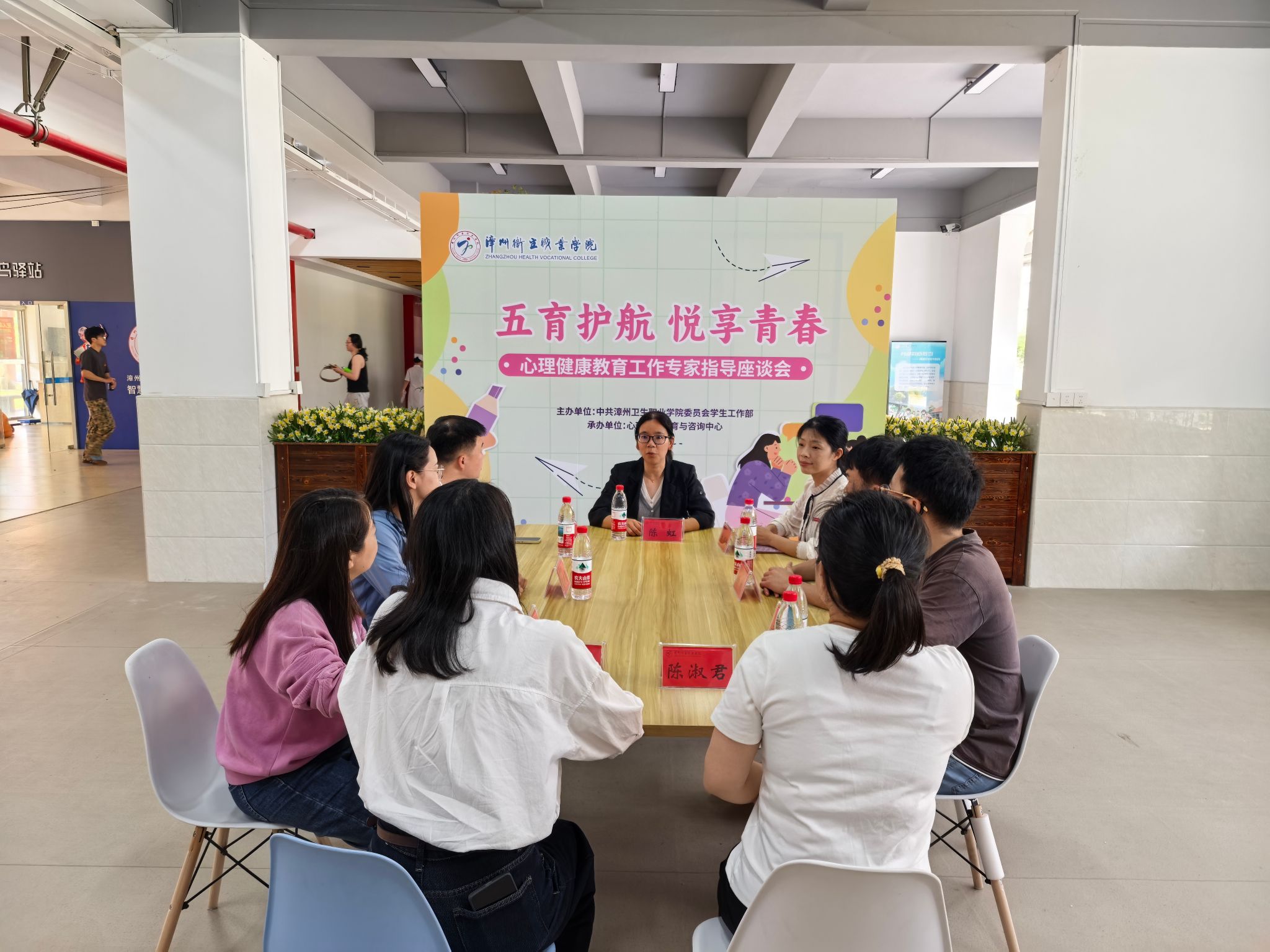 会上,陈义三为闽南师范大学教授陈虹及各二级学院心理辅导站站长颁发聘书。会议介绍了以“五育护航,悦享青春”为主题的心理健康月活动情况,将通过讲座、团体心理辅导、互动游戏及心理知识竞赛等形式科普心理健康知识,营造全员育心氛围。会后,陈虹在学生公寓9号楼“一站式”学生社区开展座谈会,以“二级心理辅导站建设”为主题,分享了建设经验,并与各学院心理辅导站站长展开交流互动。