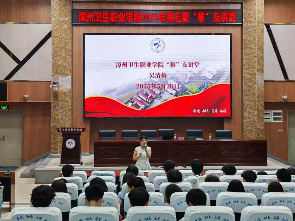 林金权以“未来之路 精准启航”为主题,结合个人经历,剖析了医疗设备应用技术行业的最新发展趋势与前沿技术动态,为在校生指明职业方向,传递“专业技能+职业素养”双提升理念。吴清梅作为“双料校友”,以“跨界成长 仁心传承”为主题,讲述了从临床护理到口腔医生的转型故事,鼓励在校生敢于突破边界并分享就业新视角,同时强调护理与口腔诊疗领域应秉承林巧稚大夫‘精益求精、大爱无疆’的精神,展现人文关怀与专业技术的完美融合。