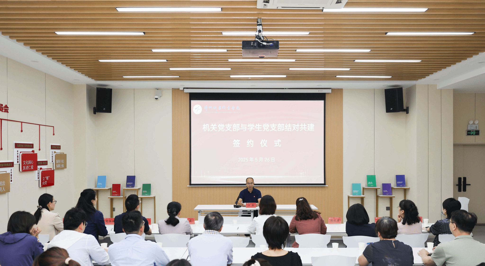 为深入贯彻落实党的基层组织建设要求,创新党建工作模式,凝聚组织育人合力,5月26日下午,学校在智慧党建展示厅召开机关党支部与学生党支部结对共建签约仪式。校党委委员、组织统战部部长方鑫出席会议,各党总支书记、机关党支部和学生党支部书记、专职组织员及组织统战部相关人员参会。
