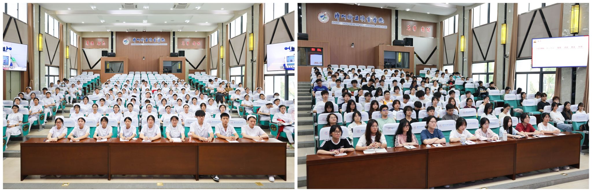 与会学子纷纷表示,将发扬“钉钉子”精神锤炼专业能力,全方位打磨自我,牢记医者初心,扛起时代赋予的重任,为推动卫生健康事业高质量发展注入蓬勃的青春力量,在守护人民健康的道路上书写精彩篇章。2024级高职护理十二班、2024级高职助产一班,2024级高职运动防护班、2024级高职针灸推拿一班、2023级高职针灸推拿一班的学生聆听了授课。