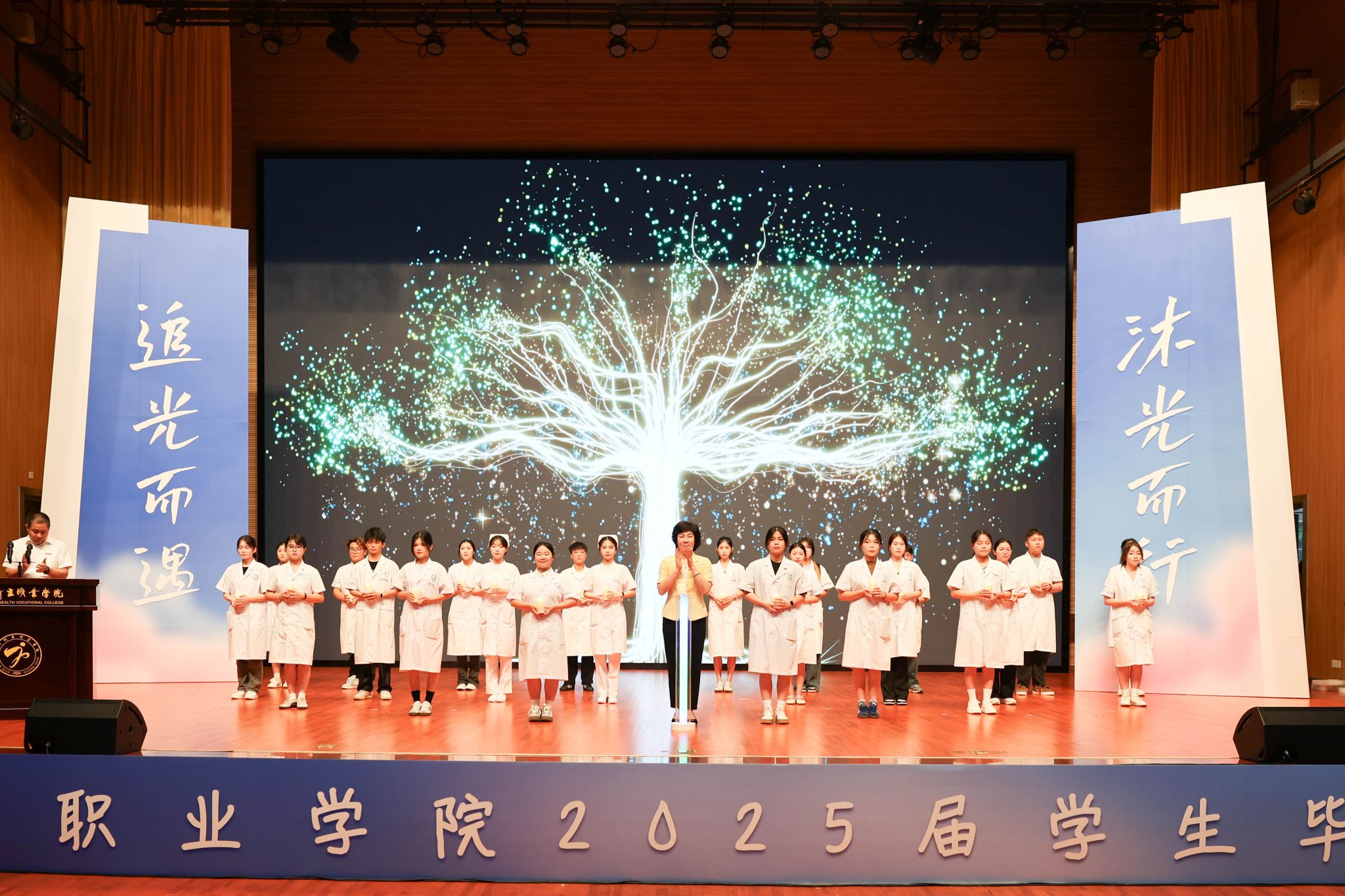 典礼在陈超亲手点亮“薪火相传”的火种中正式启幕。何坚代表学校向全体毕业生表示祝贺,并勉励全体毕业生要静得下心,守护人性至善,做治愈心灵的“布洛芬”。无论面对何种挑战,都能用知识、爱与奉献坚守纯真的善,在时光沉淀中凝聚沉潜之力,厚植志气、骨气、底气,不负时代韶华,向阳生长。要沉得住气,雕琢人格魅力,做沉淀大爱的“长效缓释剂”。在浮躁中沉淀温情,淬炼如林巧稚“看病人不是看病,是看人”的仁心,于喧嚣中守护医者温度,以卓然人格续写“万婴之母”未竟的精诚篇章。要扛得起事,勇担时代使命,做守护健康的“益生菌”。在微小处激活能量,输出营养,增强免疫,以“为天地立心,为生民立命”的担当,用智慧与勇气扛起社会责任,为民族复兴的中国梦奋力前行。