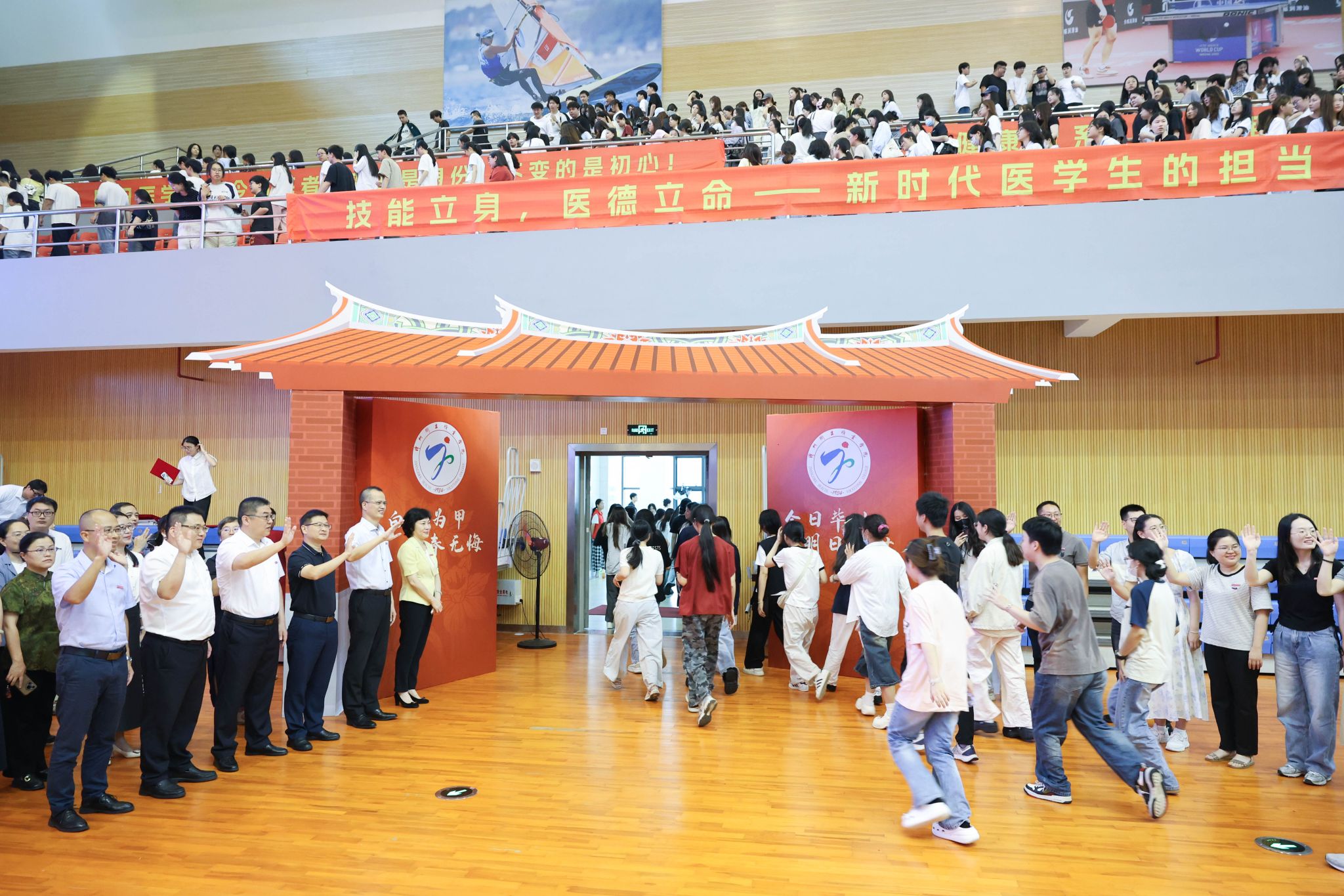 典礼尾声,全体校领导、各学院党政领导及毕业班辅导员列队伫立毕业之门两侧,目送2025届毕业生步出校园,愿全体毕业生永葆“大医精诚”的医者仁心,牢记“健康所系,性命相托”的职业誓言,在医学道路上以精勤不倦之姿深耕技艺,以护佑生命之责践行初心,以砥砺奋进之态奔赴山海!