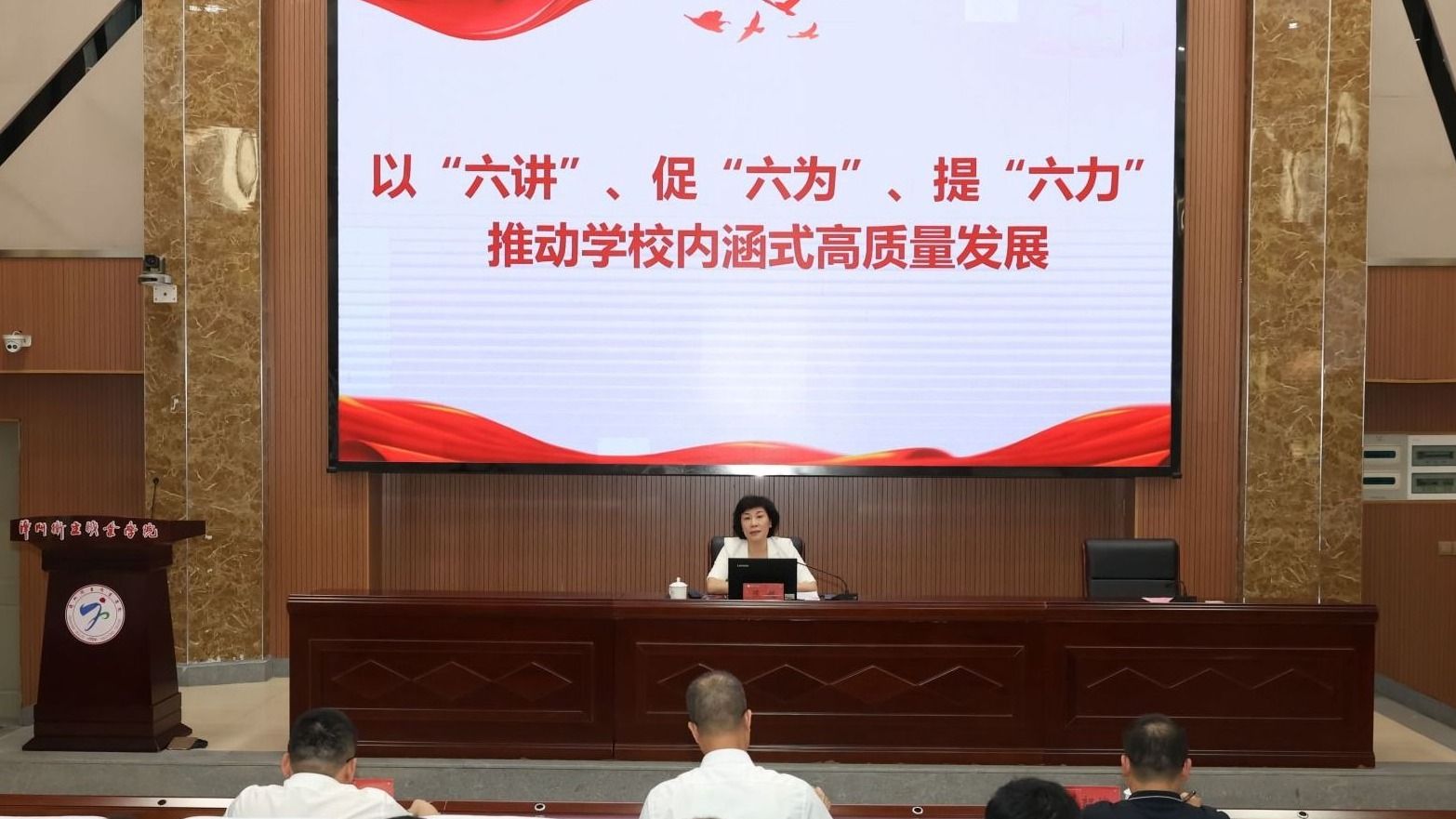会上,党委书记陈超围绕《以“六讲”、促“六为”、提“六力”,推动学校内涵式高质量发展》作专题讲话。她强调,要讲学习,树立“勇为”的信念,持续提升干事创业战斗力。立足岗位、联系实际、学以致用,切实把学习成果转化为干事创业的磅礴力量和解决存在问题的思路举措。要讲规矩,强化“能为”的意识,持续提升干部队伍执行力。深刻认识讲规矩的极端重要性,让“讲规矩”内化于心、化于行,真正做到在规章制度的框架内大胆作为、创新有为。要讲担当,涵养“甘为”的情怀,持续提升改革创新牵引力。聚焦“十五五”规划,充分发挥自身优势,在教育教学、人才培养和专业建设等方面有所建树,为学校的改革攻坚献智出力。要讲团结,提振“勤为”的锐气,持续提升攻坚克难向心力。树立“一条心、一盘棋”思想,充分发挥主观能动性,积极主动,勤于作为,奋力打开发展新天地。要讲效率,练就“善为”的功夫,持续提升履职尽责内驱力。以“新双高”建设和本科培育为抓手,打开工作思路、精心谋划部署、细化责任分工,推动各项工作落地落细。要讲廉洁,不越“妄为”的红线,持续提升党规法纪约束力。时刻绷紧廉洁自律这根弦,坚守公仆之心,涵养良好作风,一体推进“学、查、改”,推动学习教育走深走实。