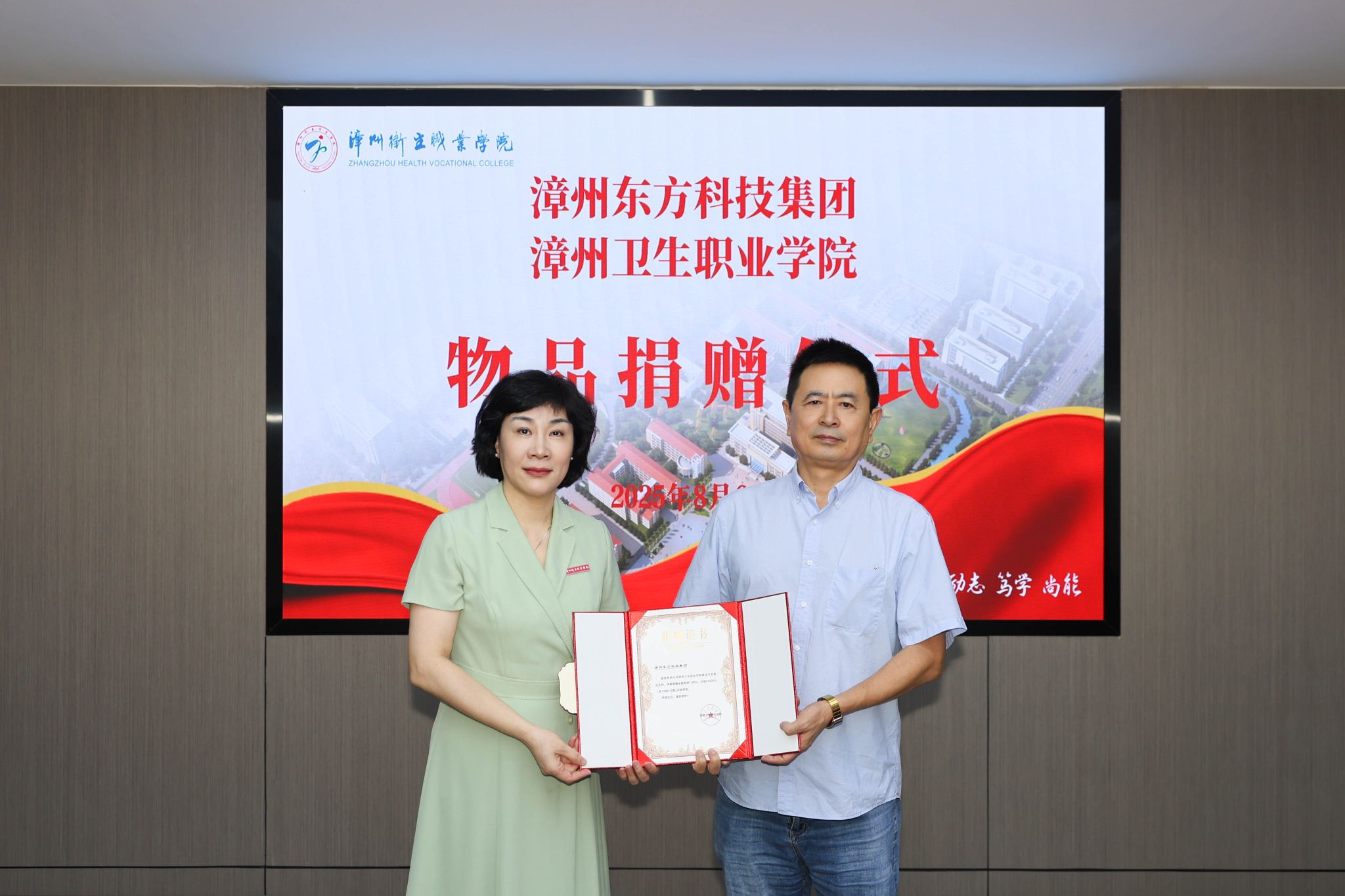 8月6日上午,我校在行政楼第二会议室举办物资捐赠仪式。漳州东方科技集团董事长黄志刚代表集团向我校捐赠物资。校党委书记陈超、副校长蔡韶滨出席仪式。