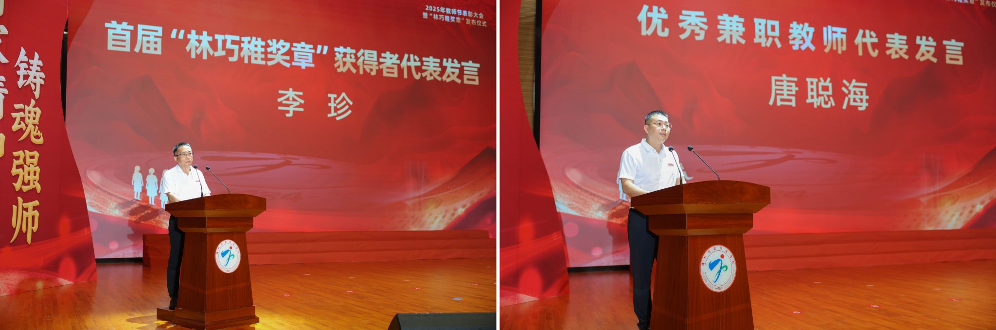 会上,何坚宣读了表彰决定,校领导分别为“首届‘林巧稚’奖章”“优秀教育工作者”“优秀兼职教师”和2024—2025学年省级一等奖及以上荣誉的教师代表颁奖。