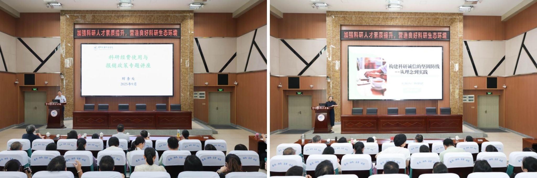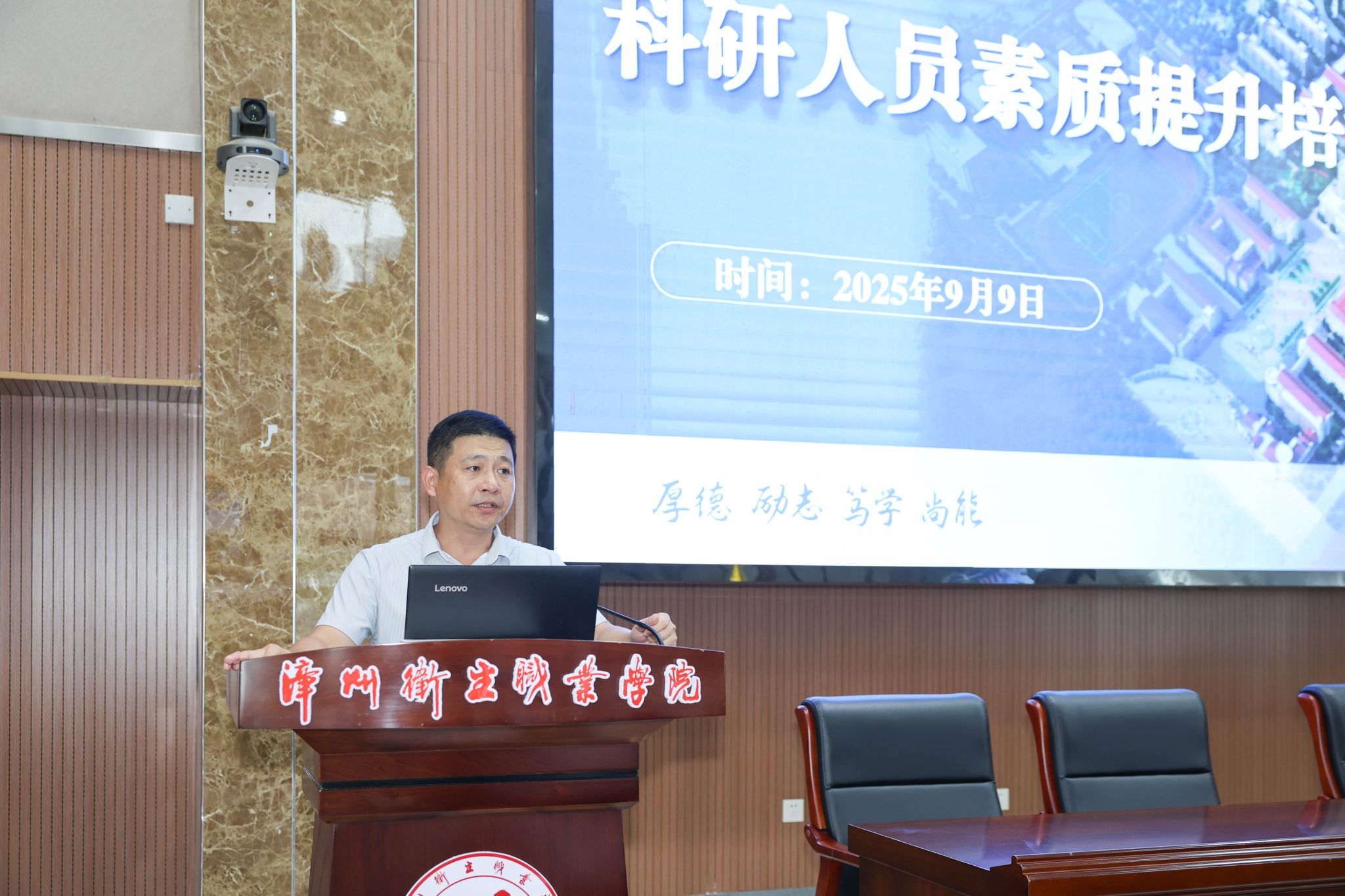 9月9日下午,我校在学术报告厅成功举办“科研人员素质提升培训”活动。副校长郑志荣出席活动并讲话,学校全体科研人员及科技处、财务处工作人员共计约200人参加培训。
