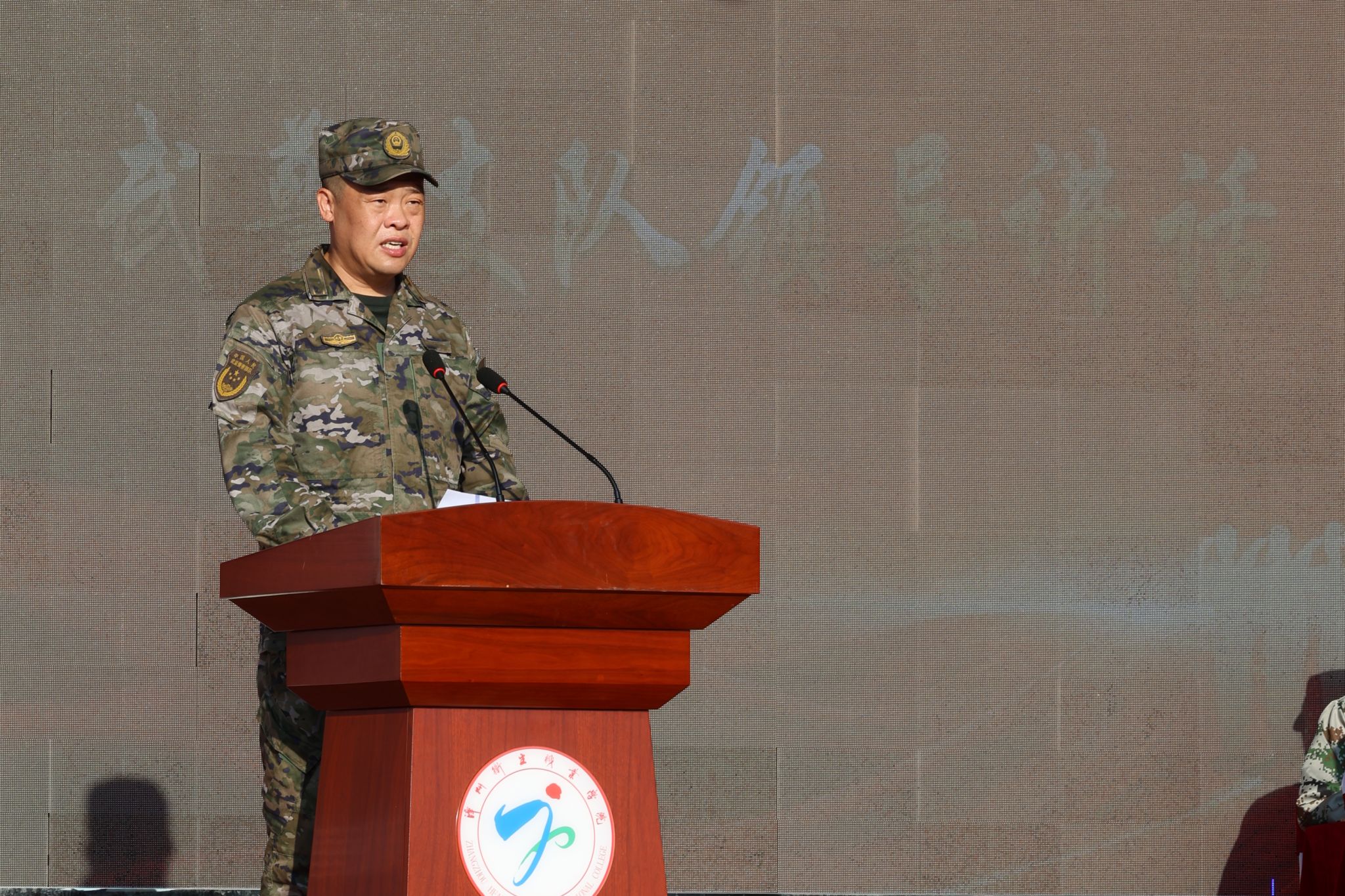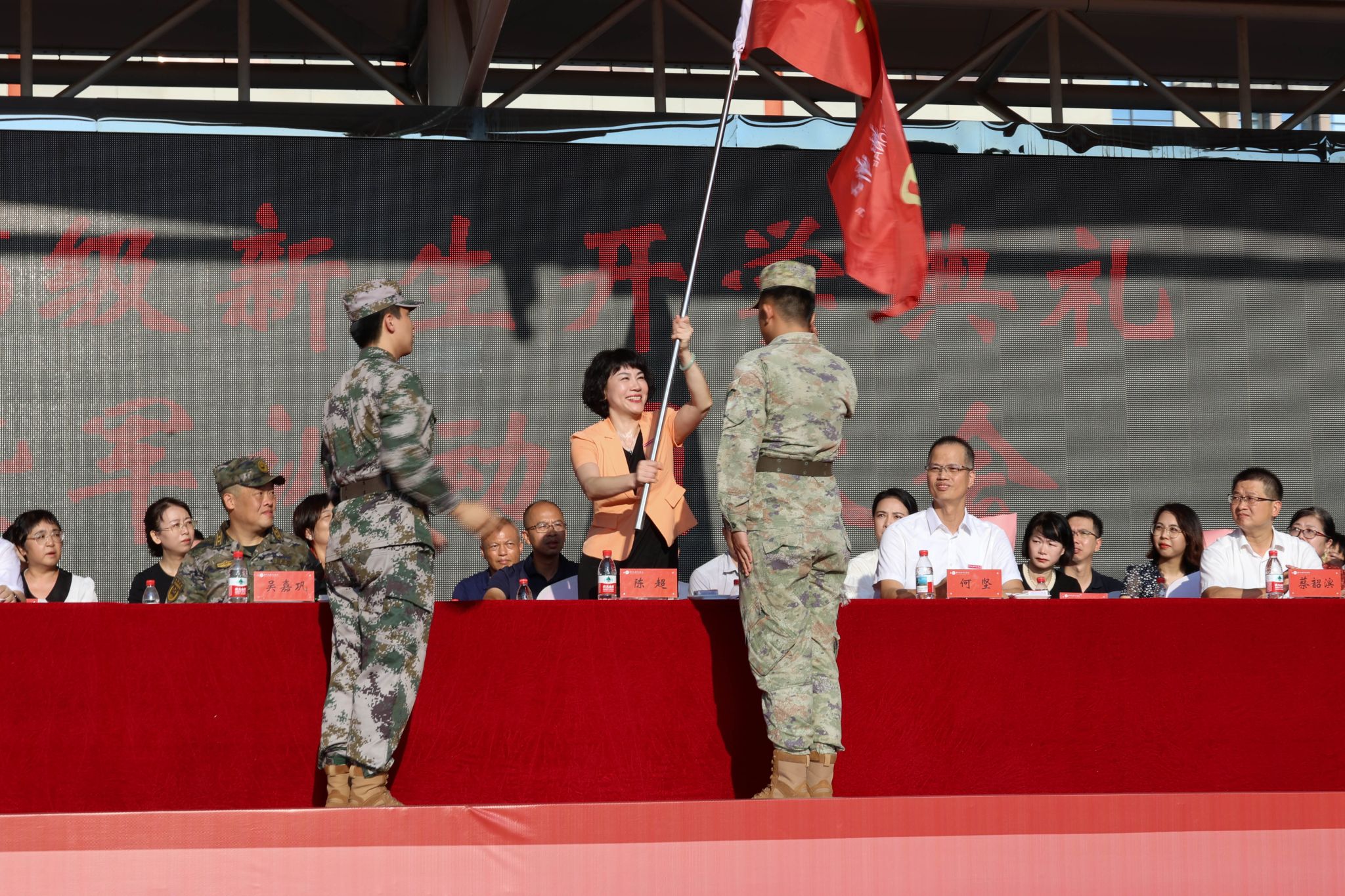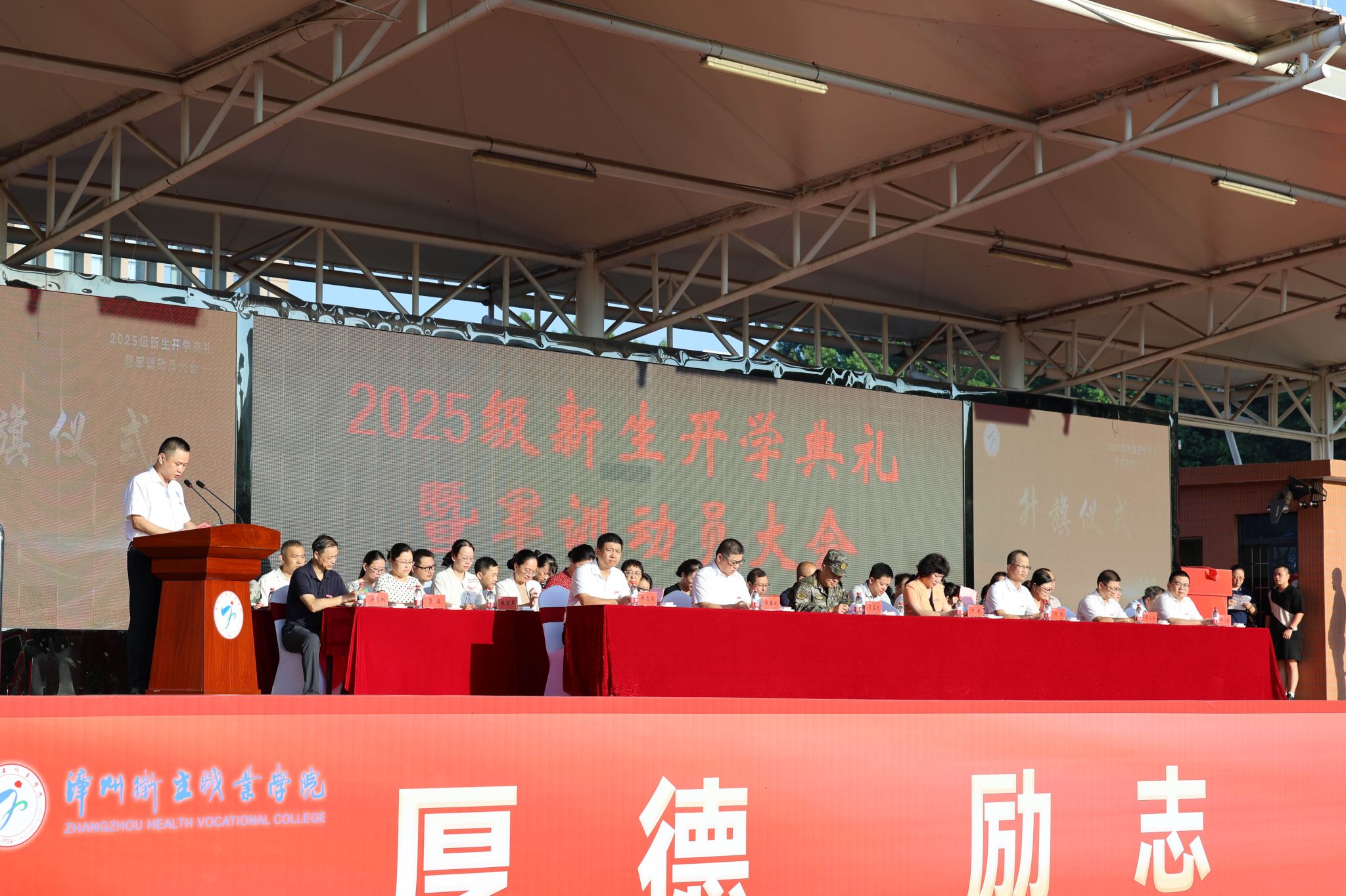 各部门负责人,各学院党政负责人、武警漳州支队官兵、全体学工队伍成员以及2025级全体新生4200人共同参加活动。