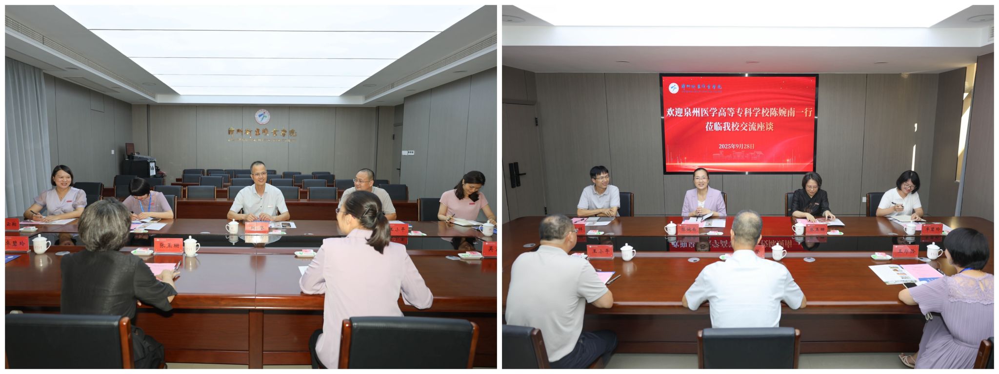 9月28日下午,泉州医学高等专科学校校长陈婉南一行莅临我校调研交流,校长何坚、副校长张春斌陪同调研。