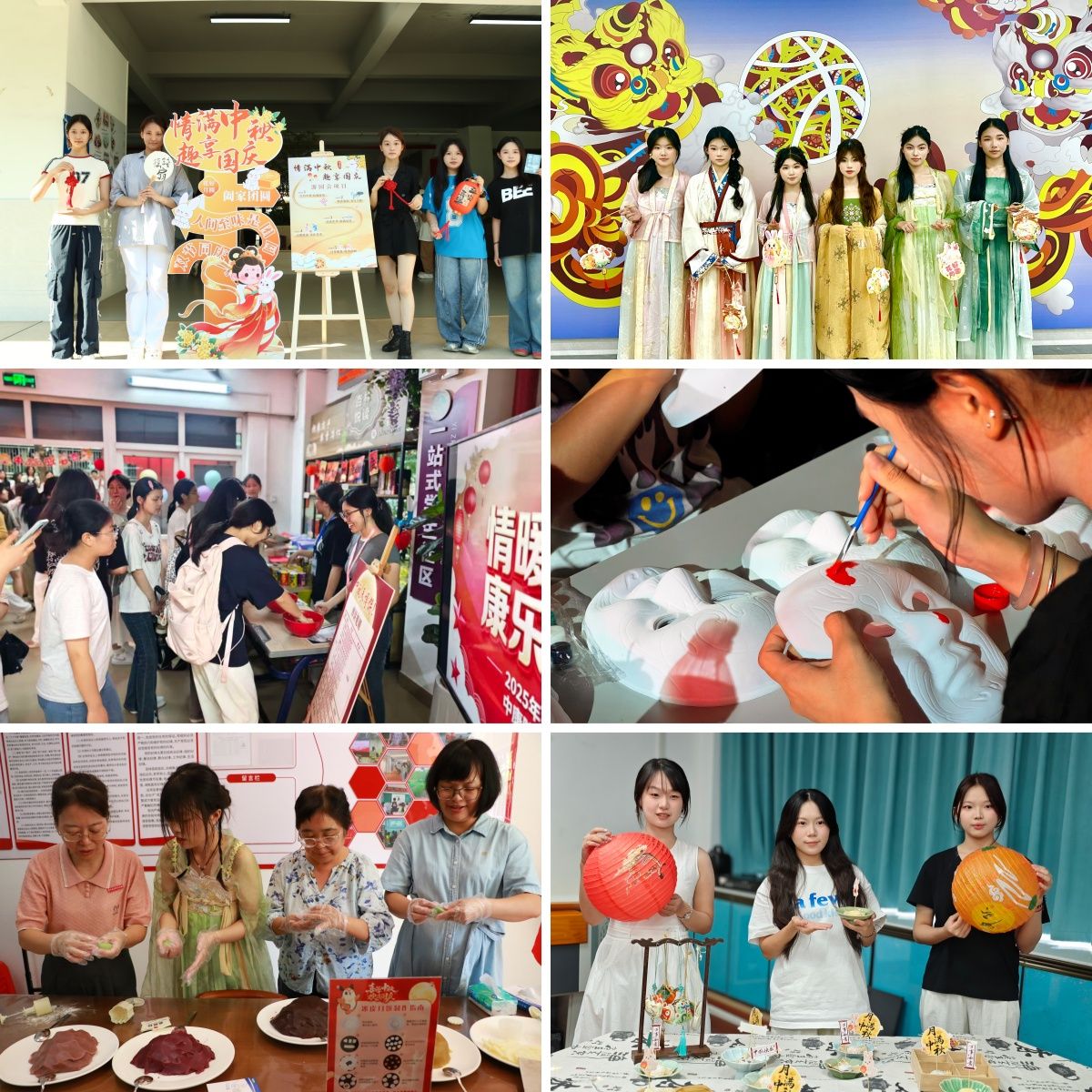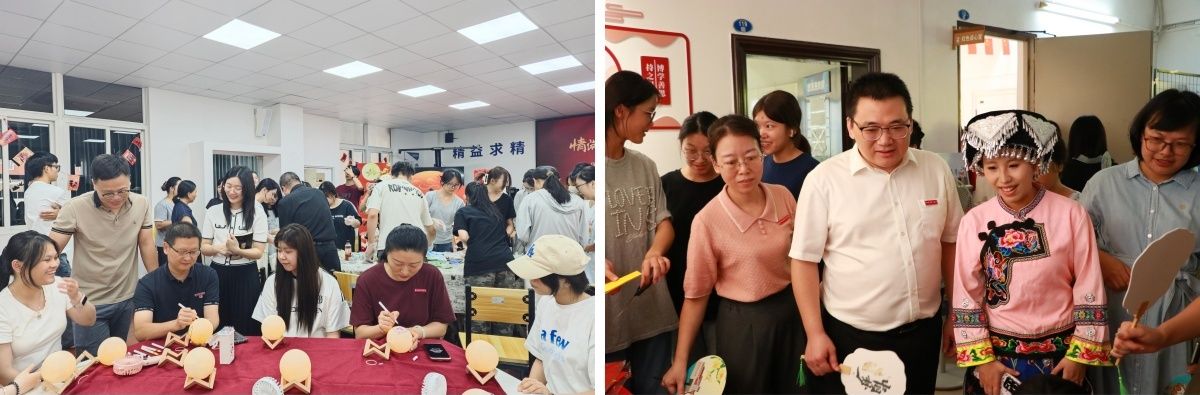 主题活动巧妙融合了文化传承、民族团结、专业特色及人文关怀四大元素。护理学院精心筹备了“情满中秋,趣享国庆”游园活动,涵盖中国结编织、诗词飞花令等多样项目,临床医学院独具匠心地策划了灯谜竞猜与花灯拼装活动,中医与康复学院巧妙融合传统游戏与专业知识,显著提升了学生的文化自信与专业认同感,口腔医学院举办了“福籽同心爱中华”迎新会,药学院借助“华服彩韵映团圆”游园活动及同心灯传递仪式,进一步强化了中华民族共同体意识,医学技术学院引领师生亲身体验非遗手工艺魅力,共同展现了学校的独特育人风采。