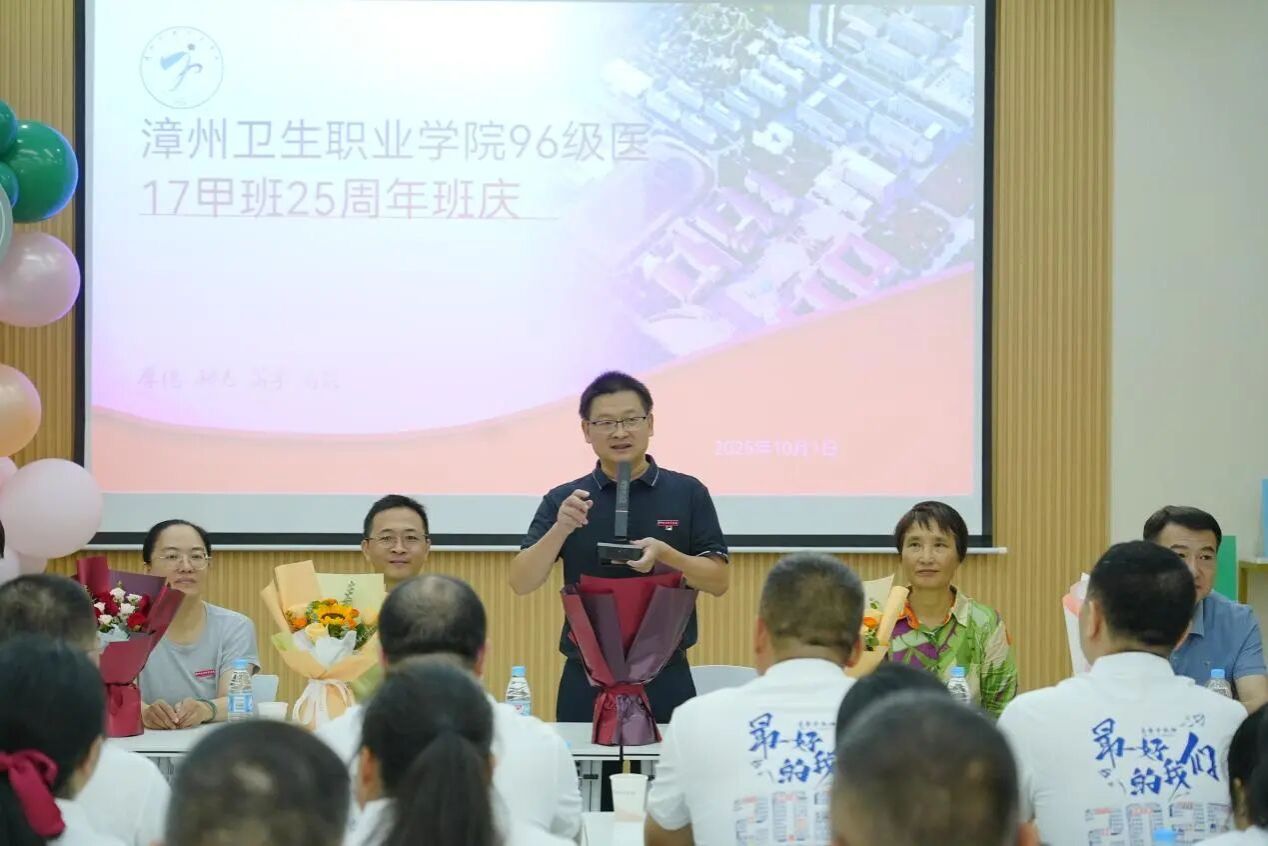10月1日,在庆祝中华人民共和国成立76周年之际,我校96级医十七甲班校友返校开展毕业25周年同学会。副校长蔡韶滨出席活动,社会合作处、临床医学院师生代表及时任教师代表陪同参加,重温青春岁月,共话母校发展。