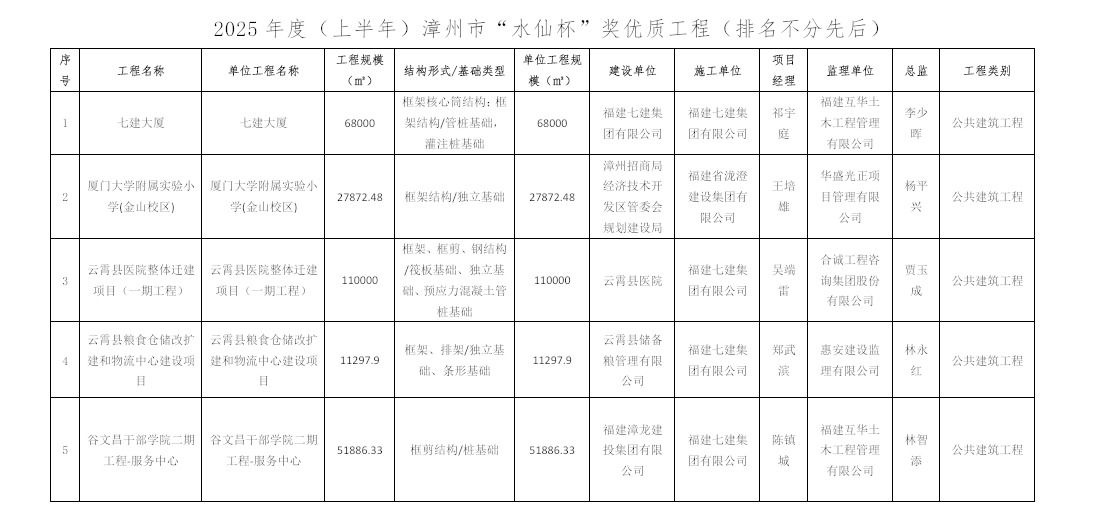 近日,漳州市建筑协会发布2025年度(上半年)漳州市“水仙杯”奖优质工程获奖名单,我校11#学生公寓项目荣获2025年度漳州市建设工程“水仙杯”奖,标志着项目在规划设计、施工建造、品质管控等方面均达到全市同类工程领先水平,是对学校校园建设工作的高度认可。
