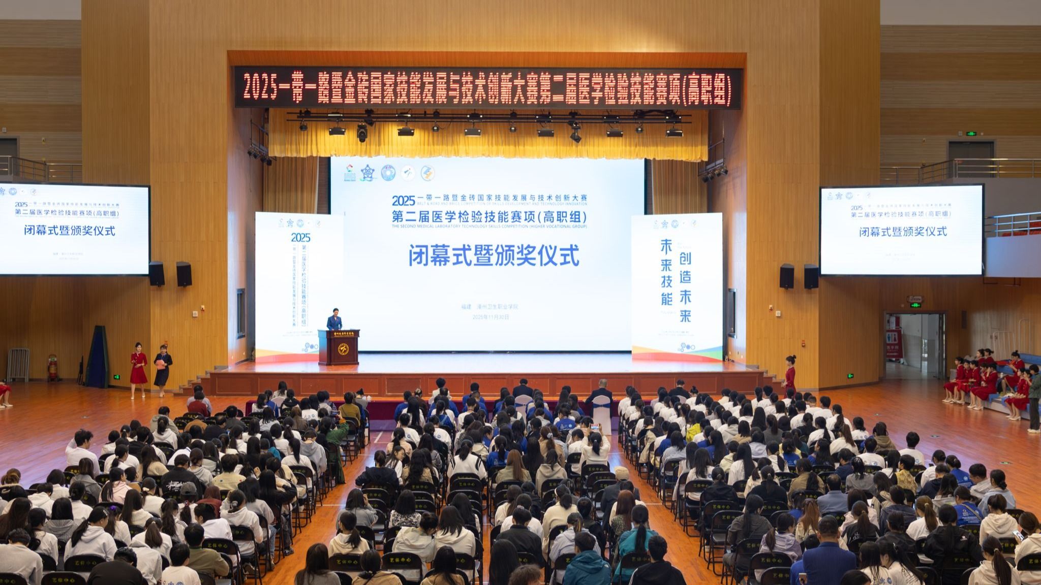 11月30日下午,2025一带一路暨金砖国家技能发展与技术创新大赛第二届医学检验技能赛项(高职组)闭幕式在我校体育艺术中心举行。校党委委员、副校长蔡韶滨,赛项专家组长、裁判长、仲裁长及大赛组委会执委会国内竞赛办公室相关负责人共同出席闭幕式。来自各参赛院校的选手、指导老师及裁判共同参加。闭幕式由校医学技术学院党总支书记主持。