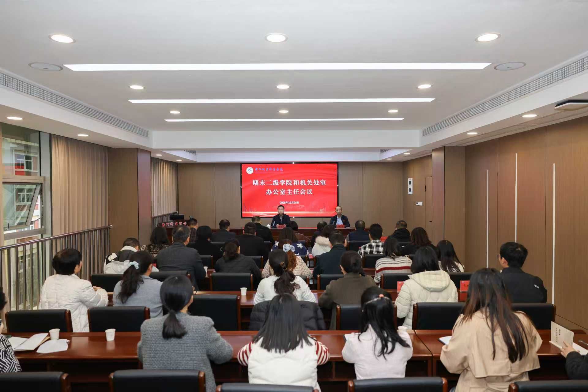 12月26日下午,我校召开各部门办公室负责人会议,副校长蔡韶滨出席会议并讲话,二级学院党政办公室主任(含负责人)和相关部门办公室主任、学校党政办全体人员参加会议,会议由学校党政办公室主任主持。