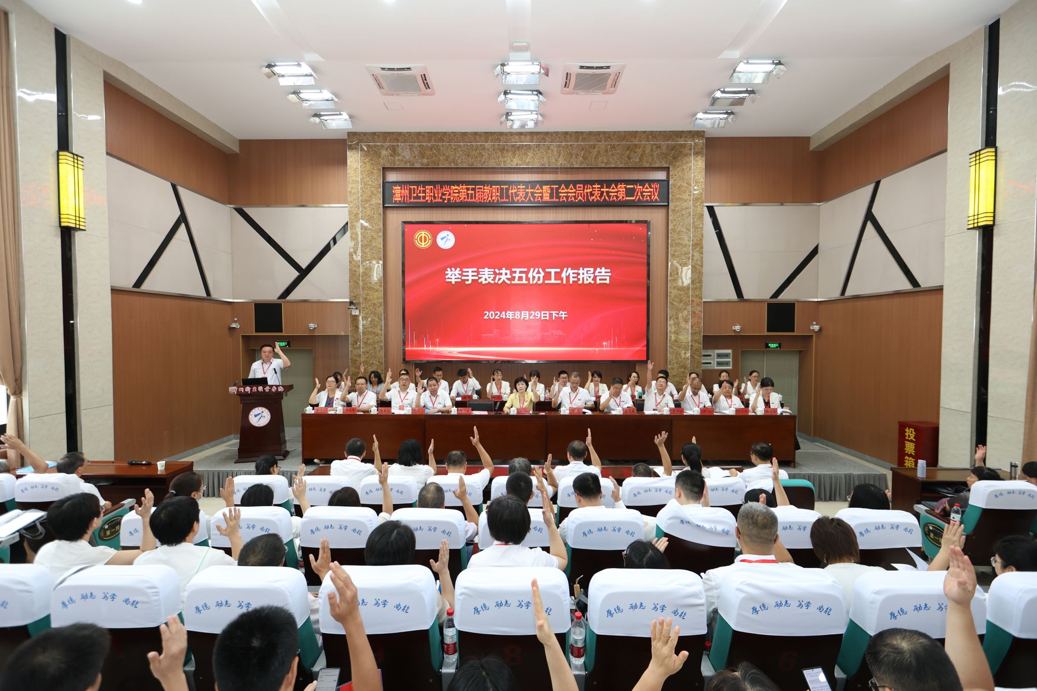 8月29日,漳州卫生职业学院第五届教代会暨工代会第二次会议在学术报告厅召开。全体校领导出席会议,全校132名正式代表、3名列席代表、1名特邀代表参加会议。会议由校党委副书记、工会主席黄乃光主持。