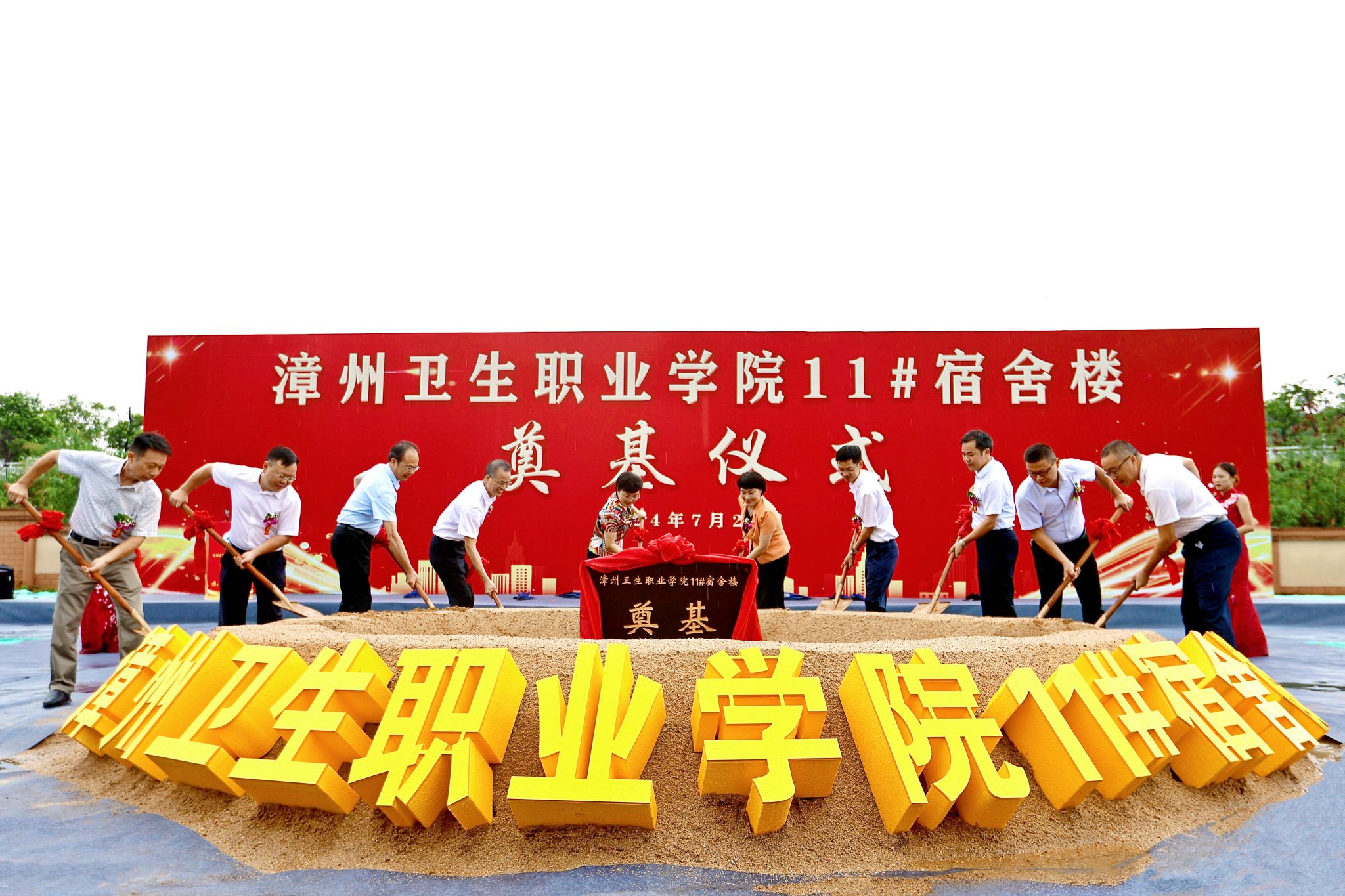 余向红、陈超为项目奠基石揭彩,全体与会领导和嘉宾共同为项目开工培土奠基。卢炳全在致辞中指出,希望学校以11号宿舍楼建设为契机,加强“一站式”学生社区建设,为全体师生创造更加优越的环境,为全面提升人才培养质量提供更加坚实的保障,为推动漳州职业教育高质量发展作出新的更大贡献。