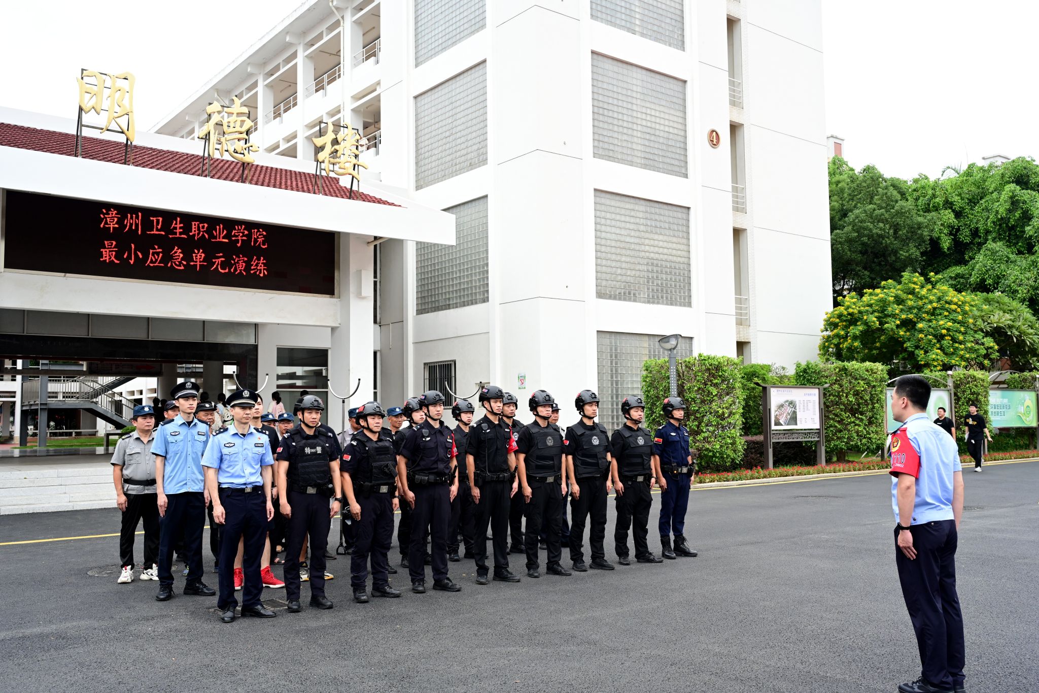 为进一步提高应对和处置突发事件的能力,9月14日上午,学校联合漳州市110、漳州市公安局巡特警支队、芗城分局巡特警反恐大队、县前派出所、漳州职业技术学院等单位开展2024年秋季学期反恐防暴暨最小应急单元演练,模拟社会面二级勤务等级情况下突发暴力事件进行演练。