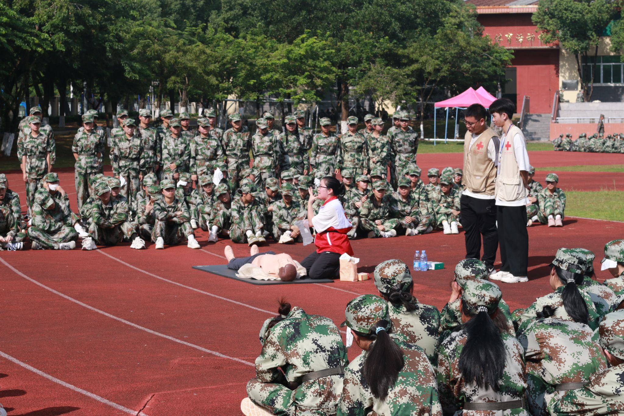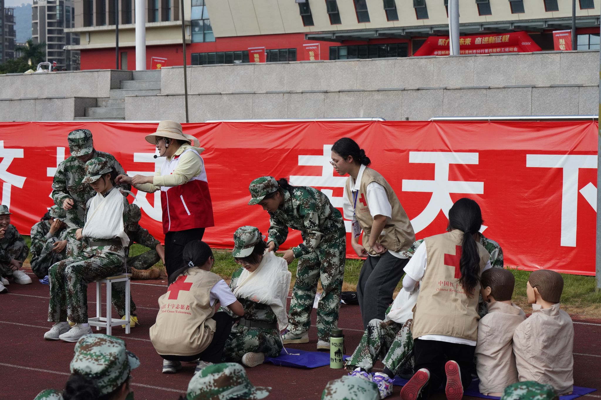 本次活动将应急救护融入新生军训,让同学们在体验军旅生活的同时,掌握实用的急救技能。活动现场以军训方阵进行分组,采取“1+3”的模式,由学校红十字应急救护教师带领学生志愿者走进各个方阵,开展涵盖徒手心肺复苏、创伤包扎、气道异物梗阻急救术等应急救护技能示范教学。