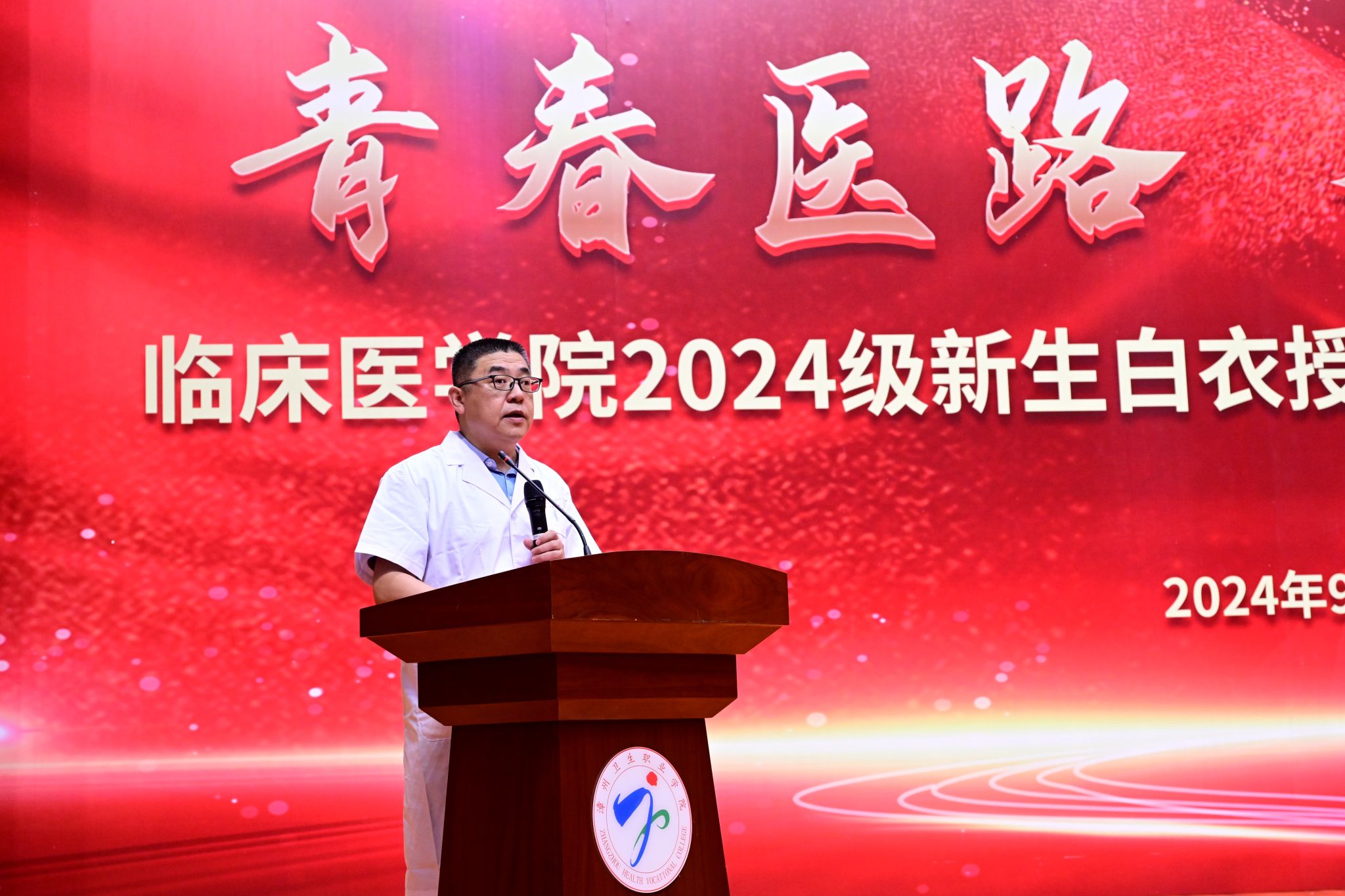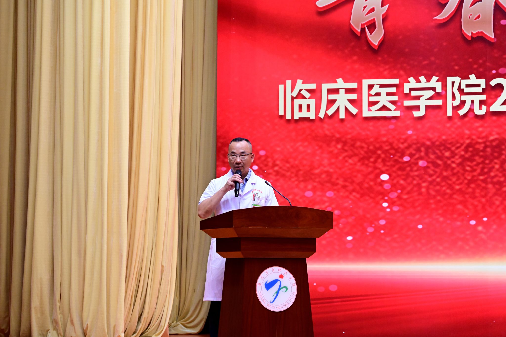 活动中,张春斌勉励青年学子,要敦品励学,向上立志。践行医者初心,传承德高医粹,笃行大医之道,将个人的成长融入祖国医学事业发展中,做心怀家国的筑梦者。要知行合一,向下扎根。始终秉持“厚德、励志、笃学、尚能”的校训,把“所学”转化为“所用”,做脚踏实地的奋斗者。要笃实守正,向内求索。厚植医学情怀,勤奋学习、勇于实践,为健康中国、教育强国贡献青春才华,做善思明辨的自省者。要勇攀高峰,向外探究。在掌握扎实的理论知识和娴熟的临床技能的同时,始终保持对事物的敏锐感知能力。