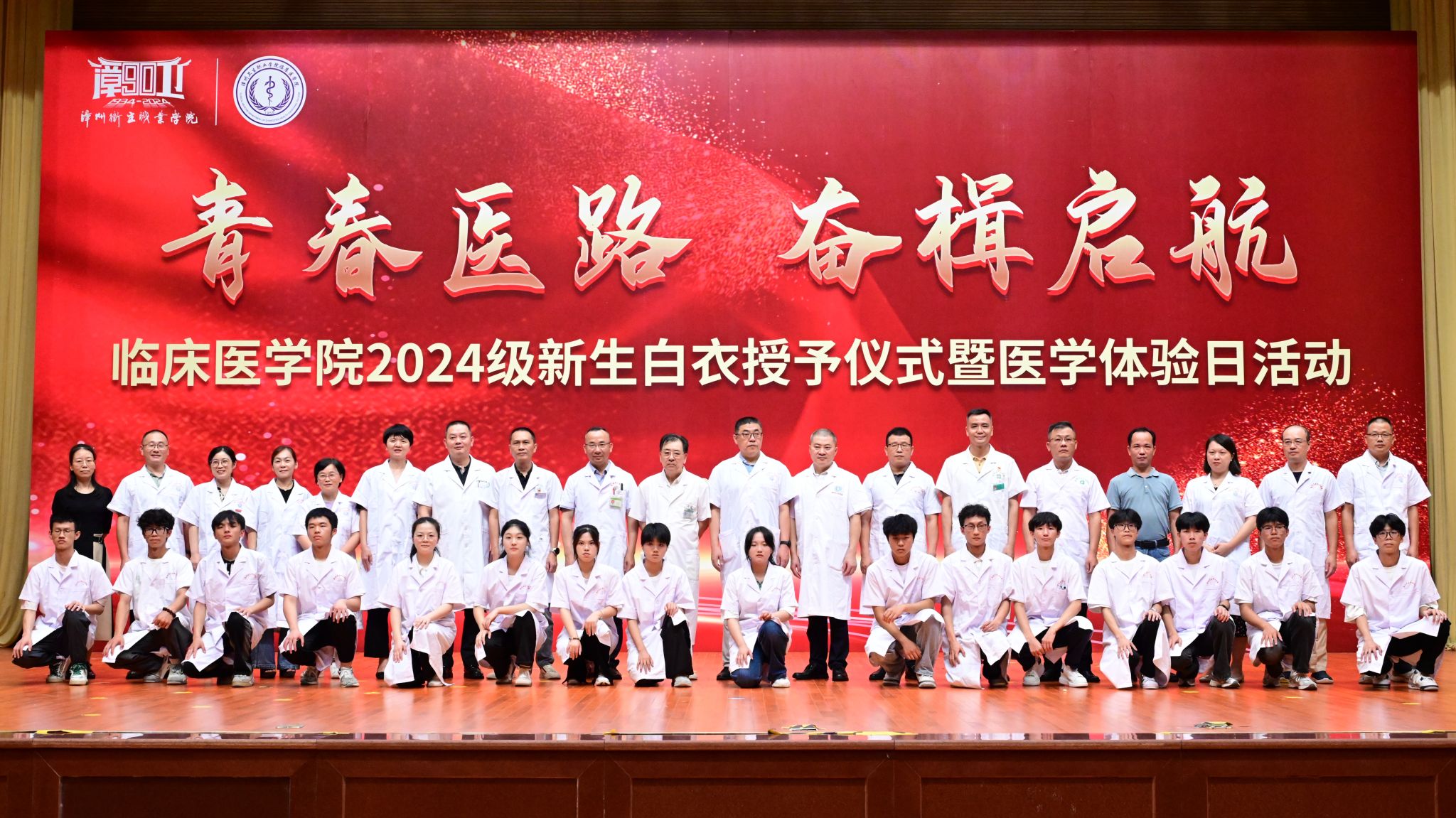 9月24日,临床医学院在体育艺术中心举行2024级新生白衣授予暨医学体验日活动。副校长张春斌,校外嘉宾代表,临床医学院党政班子、教师代表和历届校友代表及2024级全体新生参加活动。来自漳州市医院、漳州市人民医院、漳州市第三医院等临床专家及学院教师为新生代表授予白衣。