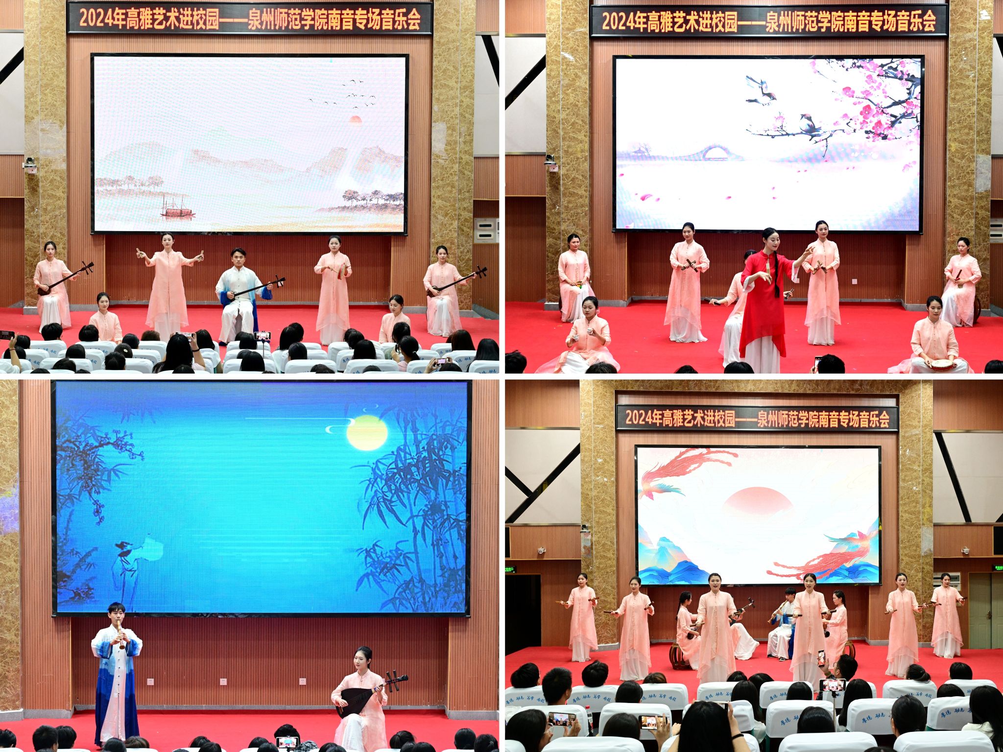 10月24日,由福建省教育厅、福建省文化和旅游厅主办,我校承办的2024年“高雅艺术进校园”泉州师范学院南音专场演出在学术报告厅举行。近200名师生齐聚一堂,共赏这场古韵悠长的南音艺术盛宴。