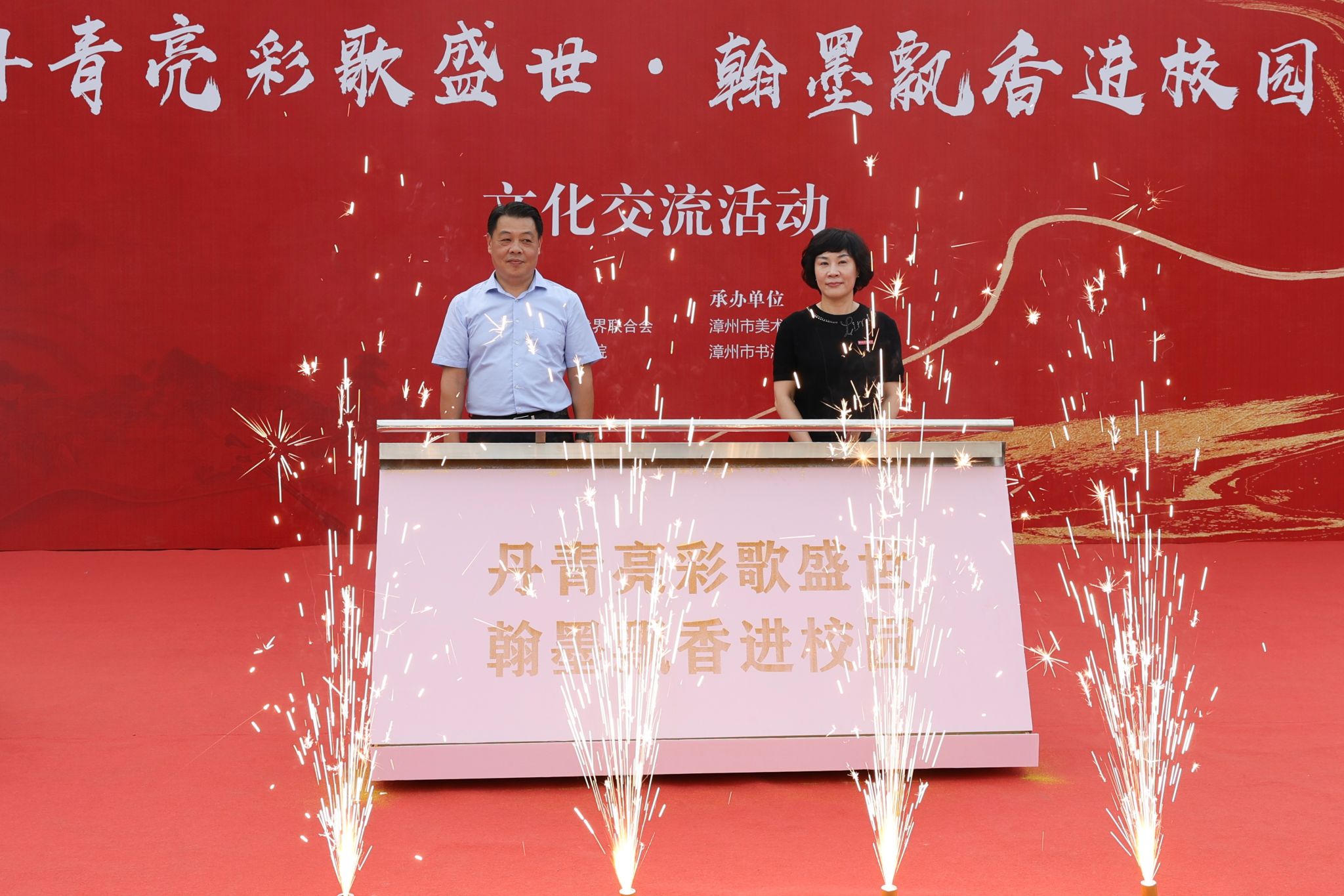 11月14日下午,由漳州市文学艺术界联合会与我校联合主办的“丹青亮彩歌盛世,翰墨飘香进校园”文化交流活动在杏林学堂成功举行。我校党委书记陈超,市委宣传部部务会成员、市文联党组书记、主席黄榕城,市文联党组成员、副主席陈晓君出席活动,启动仪式由校党委副书记黄乃光主持。