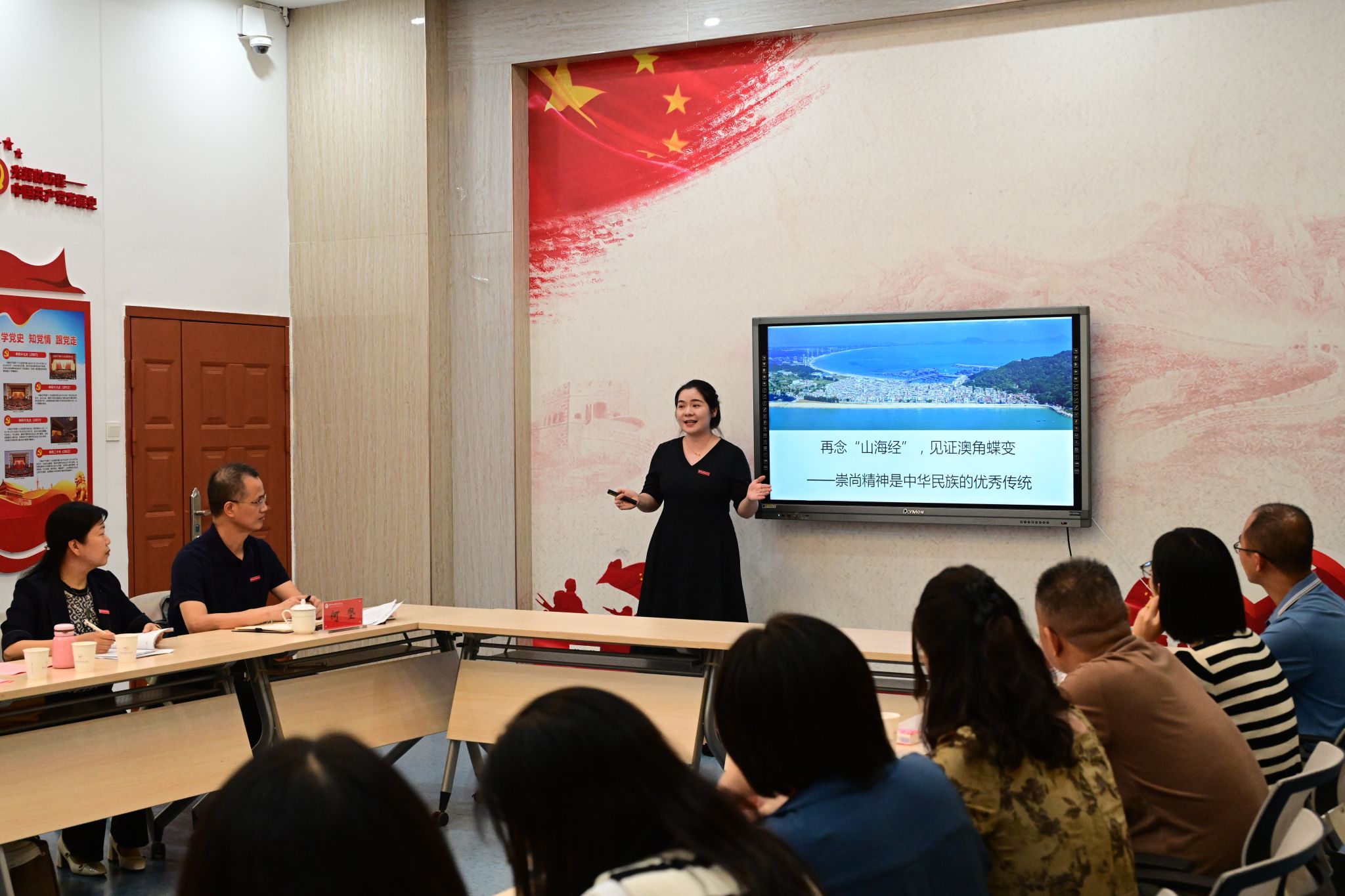 集体备课会上,教研室主任介绍了《思想道德与法治》课程建设情况、课程具体要求等内容,教师代表围绕“崇尚精神为什么是中华民族的优秀传统”为主题组织教学设计分享;教师代表吴菲琼作为福建省高校思政课“名师好课”送教活动第七组名师,以“再念‘山海经’,见证澳角蝶变——崇尚精神是中华民族的优秀传统”为主题进行教学展示,与会教师参与交流研讨,分享教学经验。