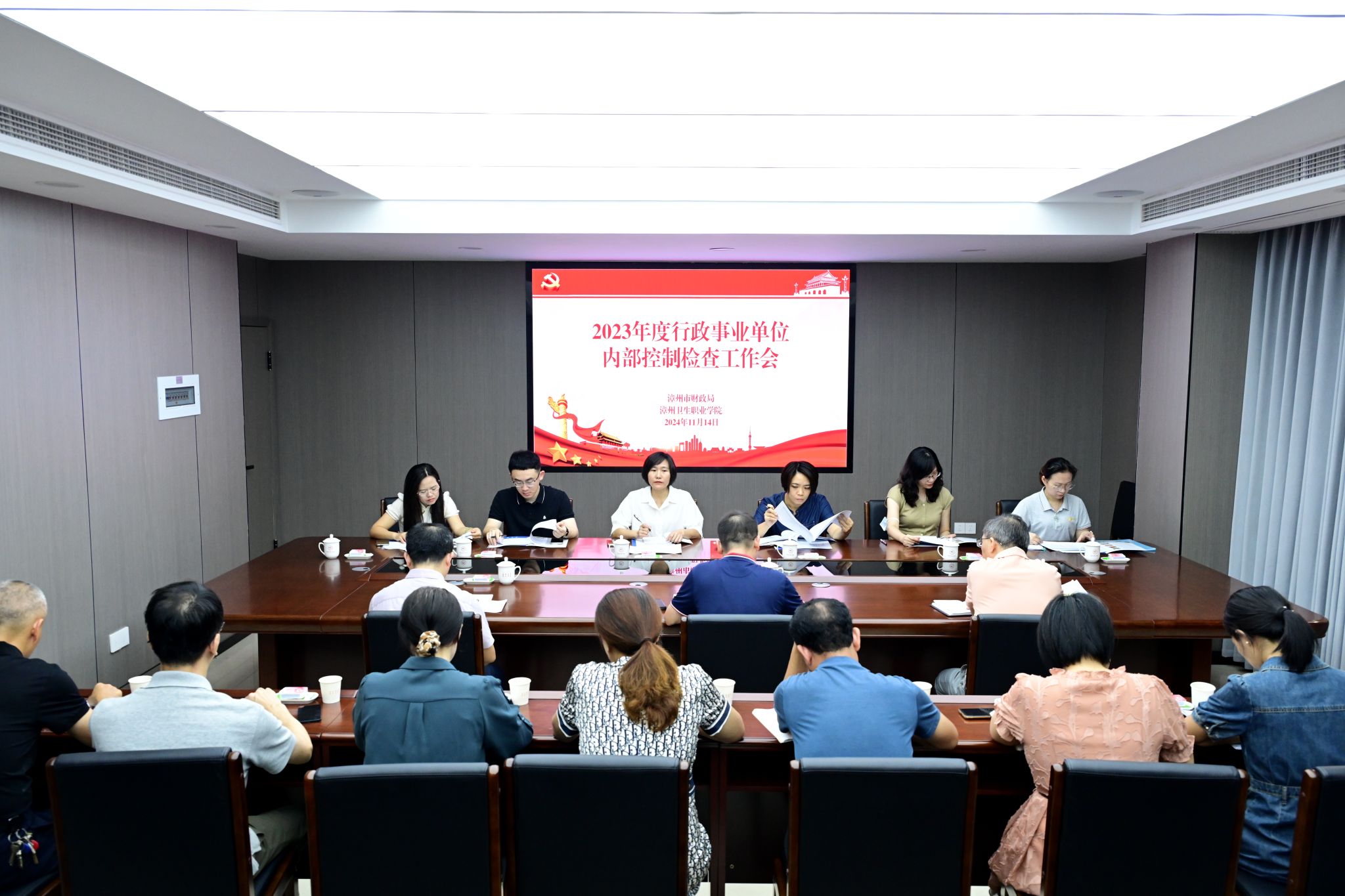 11月14日,漳州市财政局检查组莅临我校,组织开展2023年度行政事业单位内部控制检查工作,学校副校长蔡韶滨出席检查工作会议。