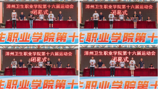 闭幕式上表彰了学生和教工组团体获奖单位。临床医学院、护理学院和医学技术学院分别获得了学生团体总分的第一名、第二名、第三名;临床医学院、护理学院、医学技术学院荣获“体育道德风尚奖”;药学院、中医与康复学院、口腔医学院荣获“优秀组织奖”。口腔医学院分工会、中医与康复学院分工会、机关第一党总支分工会获得教职工趣味运动会“优秀组织奖”。