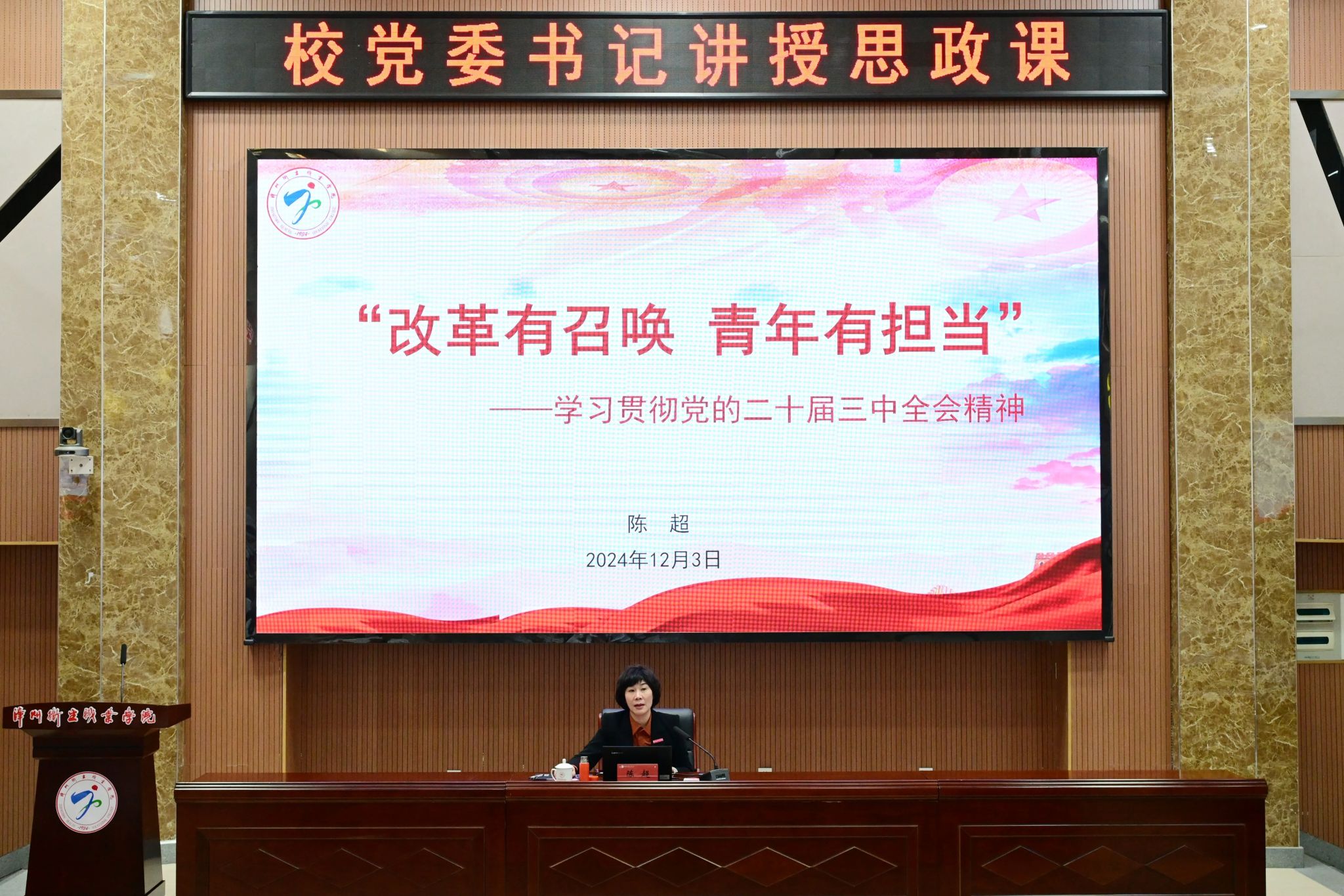 为深入学习贯彻党的二十届三中全会精神和全国教育大会精神,严格落实立德树人根本任务,引导青年学子以真才实学服务人民,以创新创造贡献国家,勇做改革创新的实践者和生力军。12月3日下午,党委书记陈超以“改革有召唤 青年有担当——学习贯彻党的二十届三中全会精神”为主题,为医学生带来一场有思想高度和理论深度的思政课。