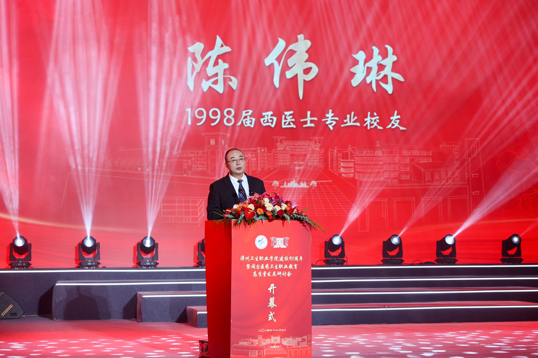校友代表、“中国好医生”、“中国青年五四奖章”获得者陈伟琳表示,能与父亲一起,两代校友同回母校参加90周年校庆,感到非常喜悦、自豪、感恩。他希望与广大校友一起,以一名自豪的漳卫人身份去践行“健康所系,性命相托”的誓言,在服务“健康中国”战略中砥砺前行,在推动中国式现代化建设中奋勇争先。