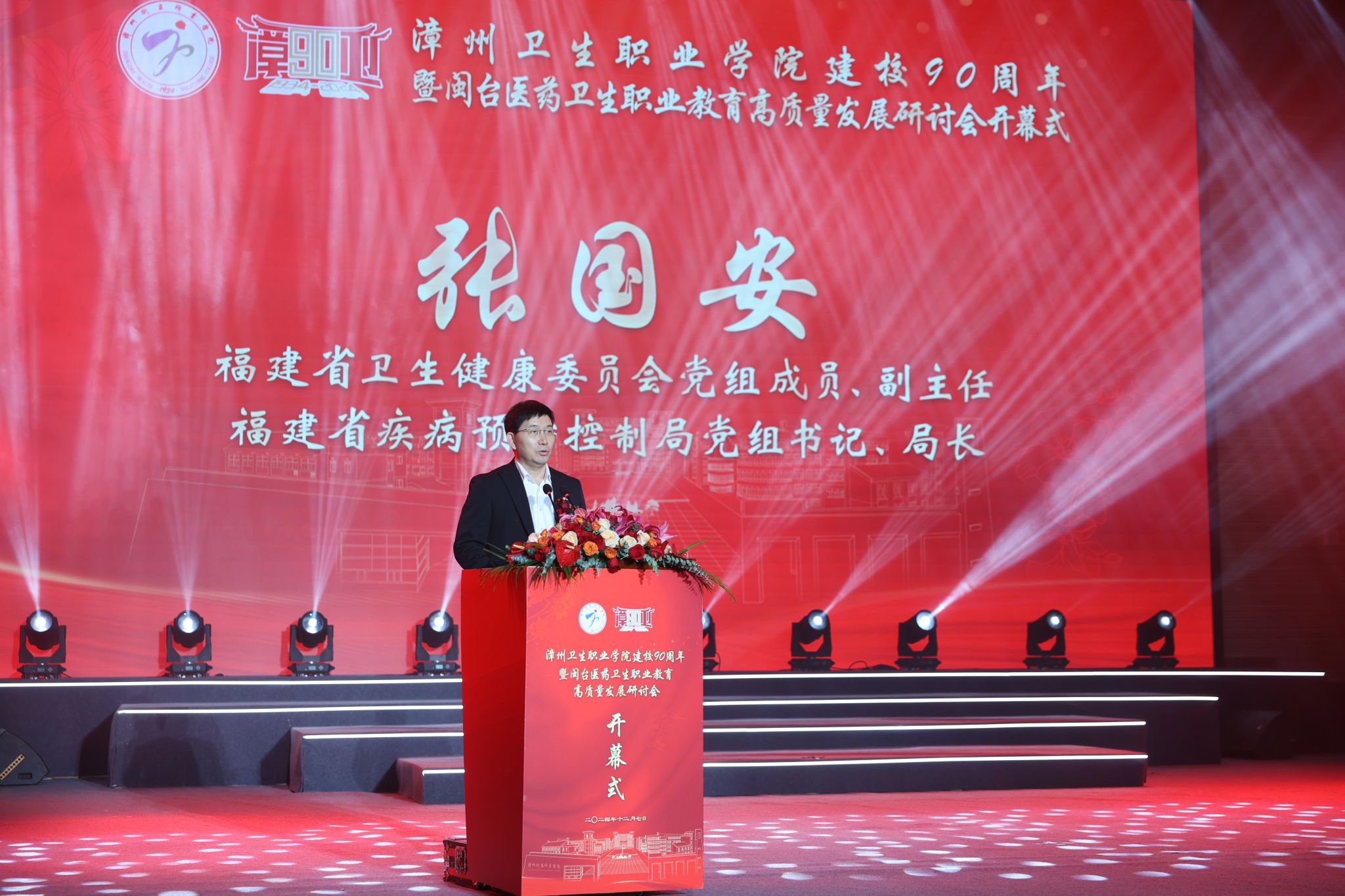 漳州市委书记王进足,省人大教科文卫委副主任委员林和平,省政协教科卫体委员会副主任刘健、吴彬镪,省委教育工委副书记、教育厅副厅长李绚,省卫健委副主任、省疾病预防控制局局长张国安,漳州市领导吴卫红、吴芳华、余向红、何伟燕等出席会议。省内外兄弟院校领导,两岸专家学者,学校退休老领导,校友代表、师生代表、媒体代表等3000余人参加开幕式。