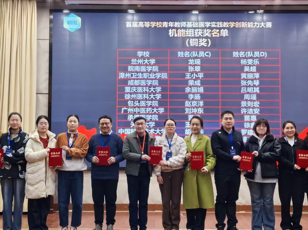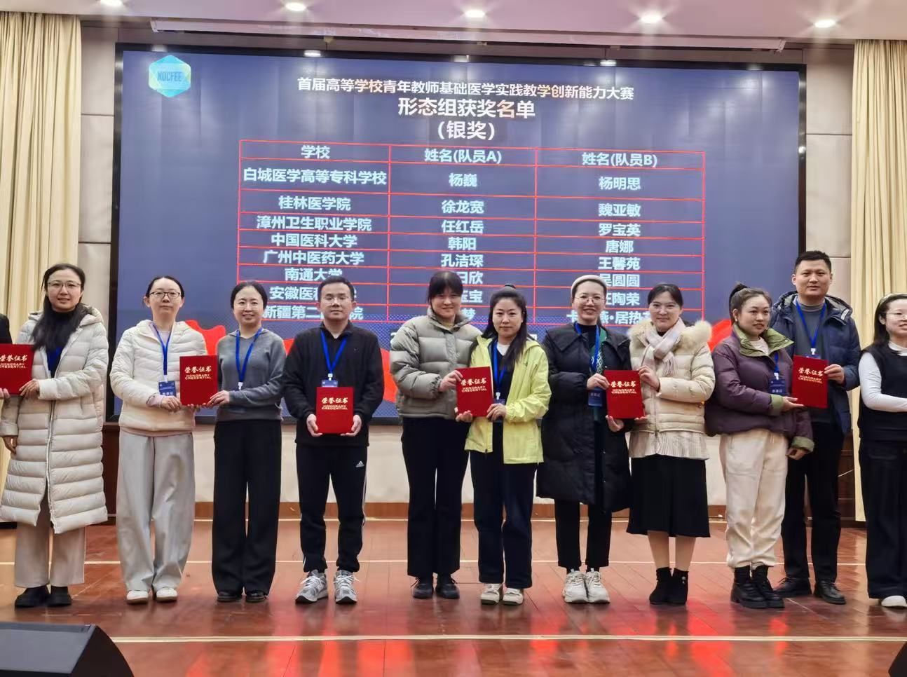 12月27日,由高等学校国家级实验教学示范中心主办的首届高等学校青年教师基础医学实践教学创新能力大赛在安徽医科大学顺利落下帷幕。来自全国各地的36所院校参加本次比赛,其中本科院校32所,高职院校4所。我校选派四名青年教师组建团队参加比赛。