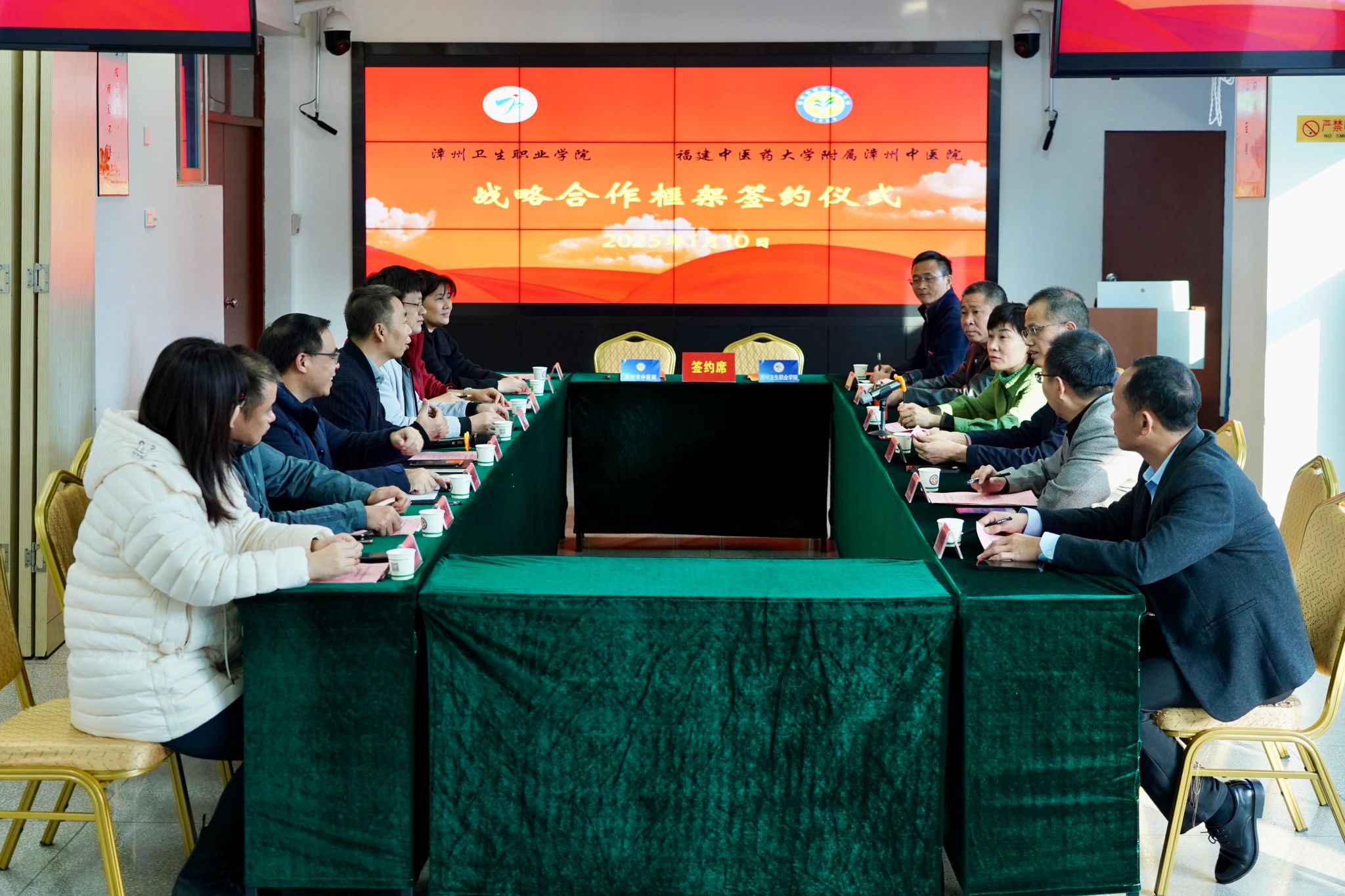 1月10日下午,我校与漳州市中医院举行战略合作框架协议签约仪式。学校党委书记陈超、校长何坚、副校长陈义三,漳州市中医院党委书记白正勇、院长林石明、纪委书记陈松华参加会议。